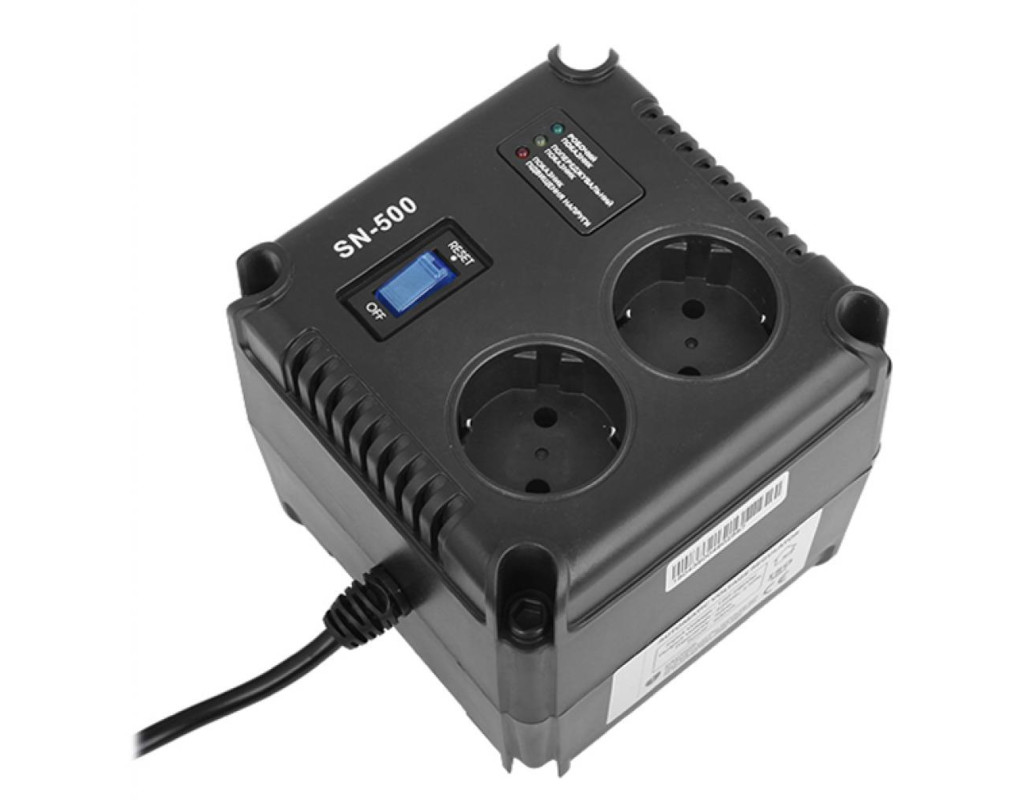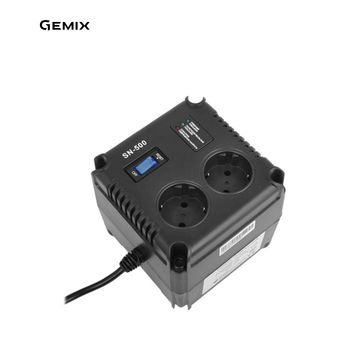 Стабілізатор GEMIX SN-500 Автоматичний стабілізатор напруги Gemix SN-500. Призначений для захисту побутових приладів потужністю до 500 ВА, від основних проблем з електроживленням: підвищення і пониження напруги. Особливості: нормалізує напруга. Захищає від стрибків напруги. Аналогова система контролю. Надійні силові елементи. Швидке реагування на зміну напруги. LED індикація. Працює з усіма видами побутової техніки, AV і комп'ютерної техніки. |