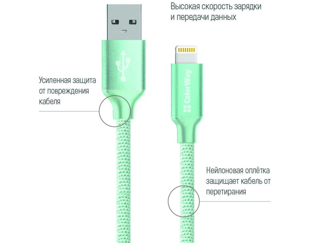 Дата кабель USB 2.0 AM to Lightning 1.0m mint ColorWay (CW-CBUL004-MT)
