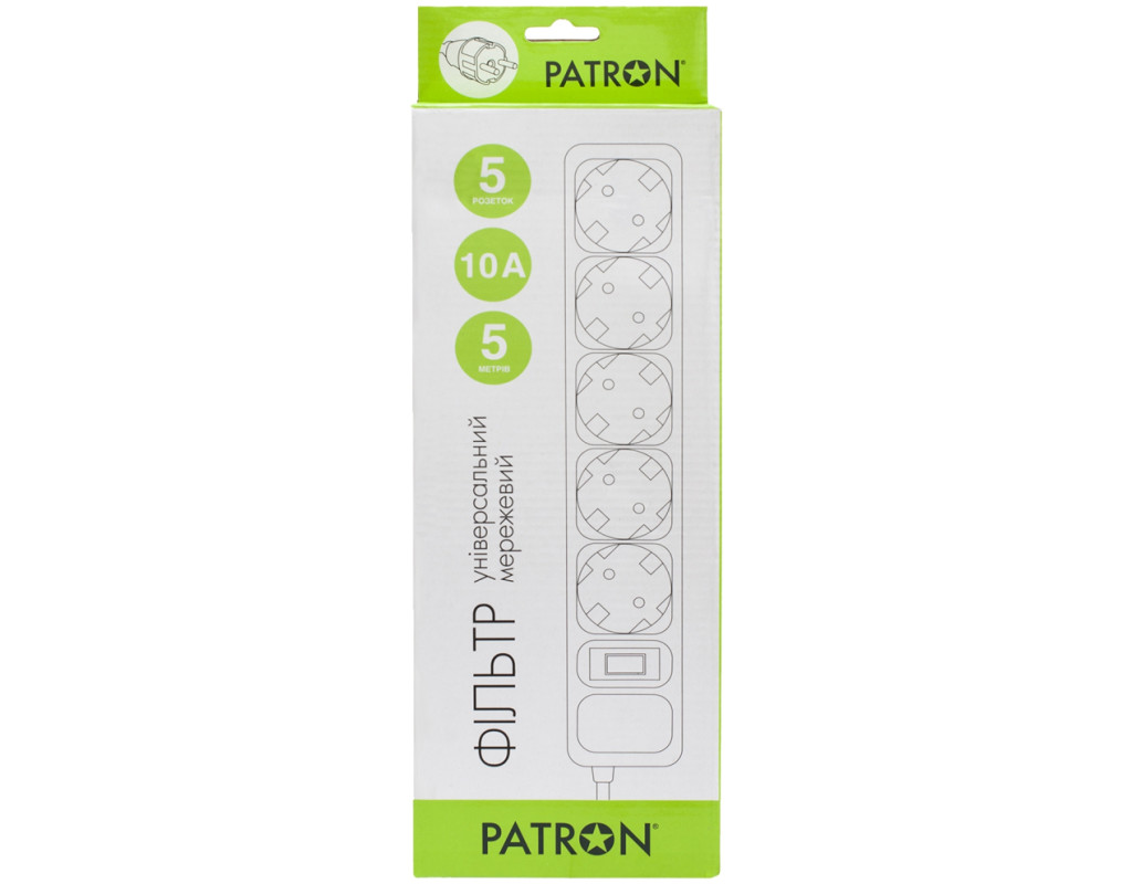 Мережевий фільтр живлення Patron 5m (SP-1055W), 5 розеток White (EXT-PN-SP-1055W)