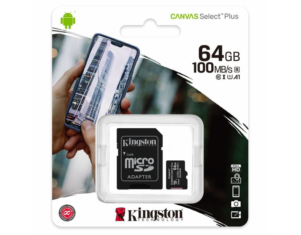 | Карта пам'яті Kingston 64GB microSDXC class 10 A1 Canvas Select Plus (SDCS2/64GB) стане вашим надійним партнером у збереженні важливих даних завдяки своїм висококласним характеристикам. Вона забезпечує вражаючу швидкість читання до 100 МБ/с, що дозволяє миттєво відкривати фото, відео та застосунки. Маючи обсяг 64 ГБ, ця карта пам'яті створена для використання з пристроями на базі Android, завдяки продуктивності класу A1. Особлива перевага цієї карти – її повна сумісність зі зйомкою та обробкою медіа файлів високої роздільної здатності, що робить її ідеальним вибором для зйомки Full HD відео. Завдяки надійності та стійкості до екстремальних умов, ви зможете насолоджуватись моментами, не переймаючись безпекою ваших даних. Kingston Canvas Select Plus – це більше, ніж просто засіб зберігання. Це ваш надійний супутник у будь-якій подорожі. Додатково, карта оснащена перехідником SD, що розширює її функціональні можливості та зручність використання. Обирайте якість та надійність від Kingston, що вже зарекомендували себе у сфері цифрових технологій. |