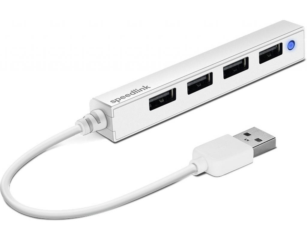 Концентратор Speedlink SNAPPY SLIM USB Hub, 4-Port, USB 2.0, Passive, White (SL-140000-WE)