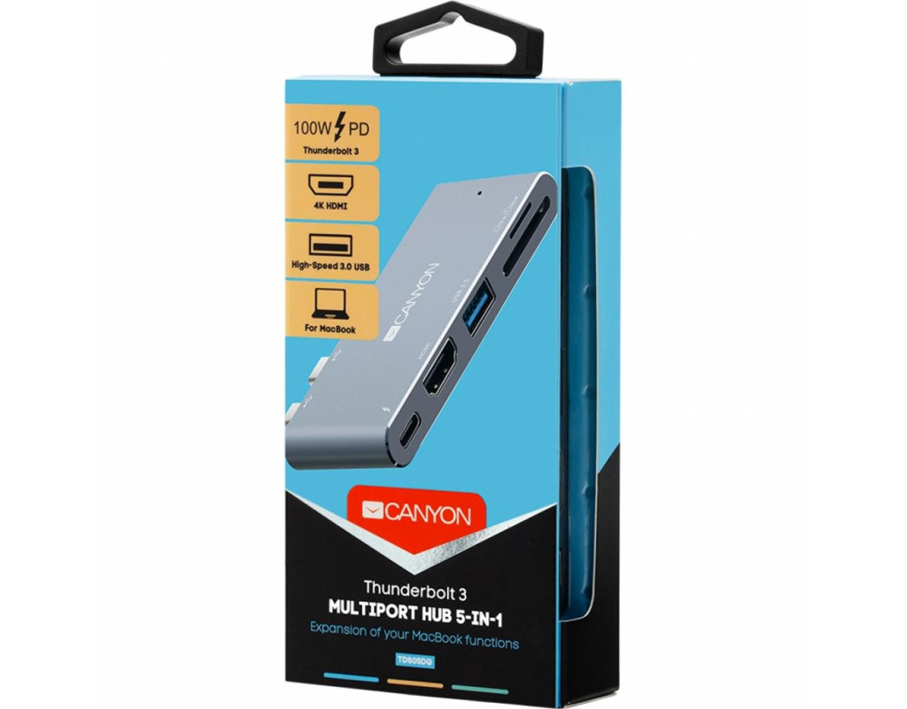 Порт-реплікатор Canyon Docking Station with 5 ports, Thunderbolt 3, Input 100-240V (CNS-TDS05DG)