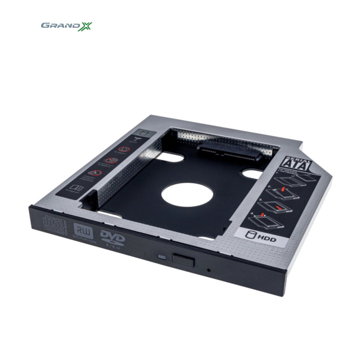 Адаптер призначений для під'єднання другого жорсткого диска (наприклад SSD) у ноутбук замість приводу CD/DVD/Blu-ray завтовшки 12.7 мм. Пристрій Plug&Play — підключив і працює. Повністю інтегрований у ноутбук, кабелі / блоки живлення / програмне забезпечення / драйвери не потрібні. Після встановлення двох HDD з'явиться можливість встановлення другої операційної системи на додатковий жорсткий диск. Комплект постачання: