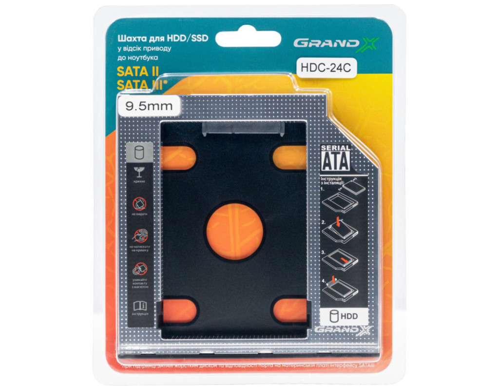 Фрейм-перехідник Grand-X HDD 2,5'' SATA2/SATA3 Slim 9,5mm (HDC-24С)