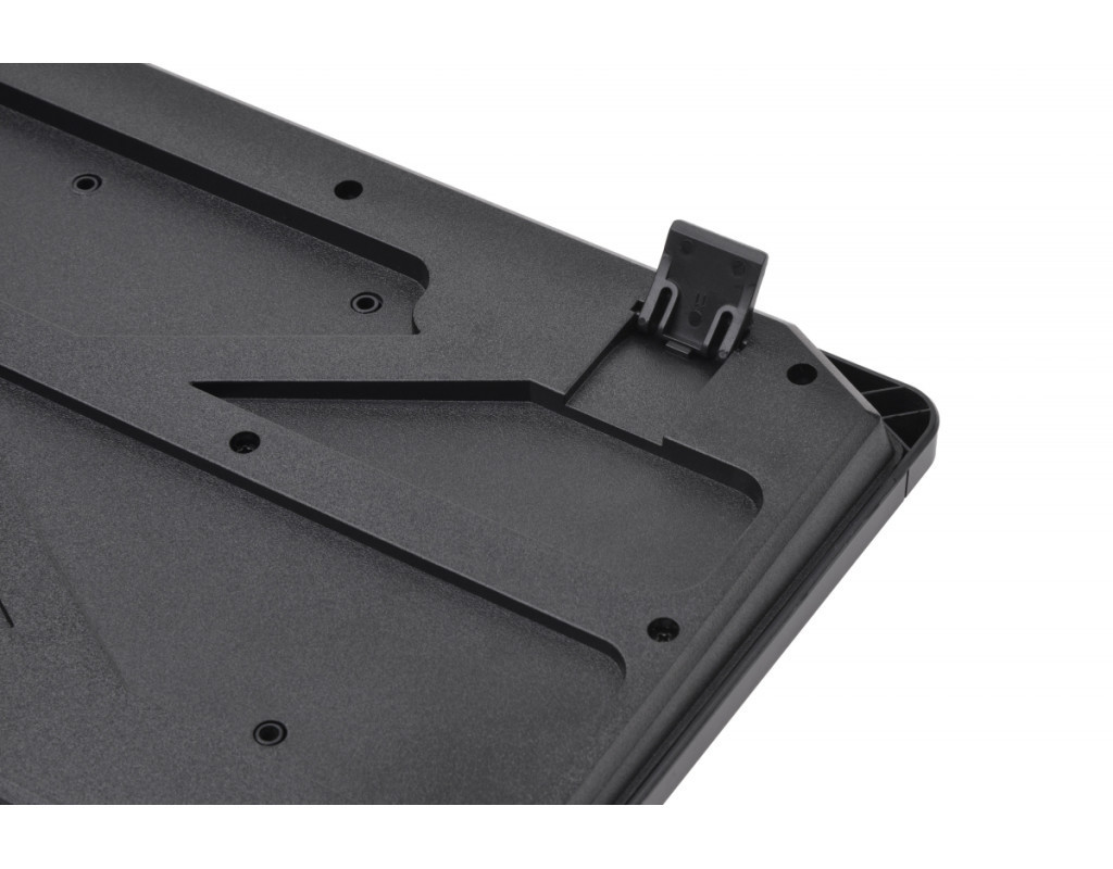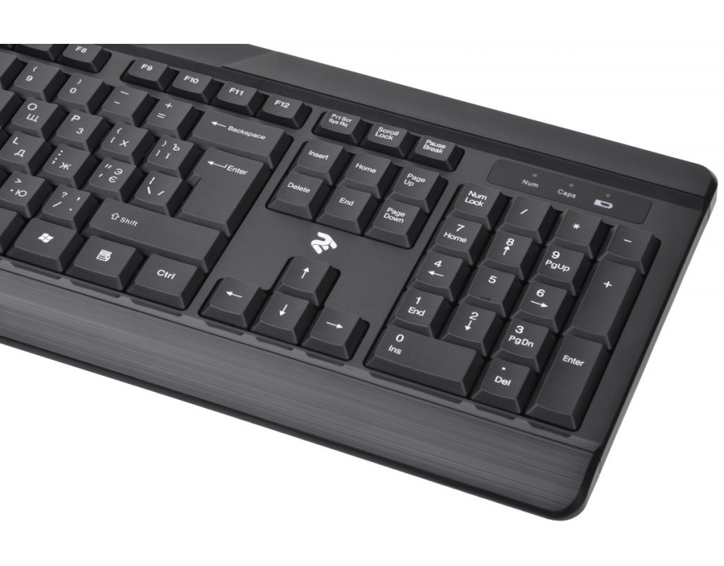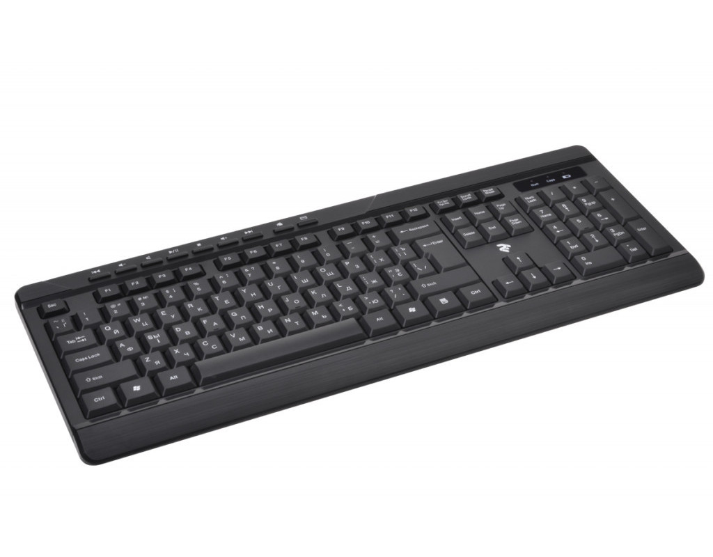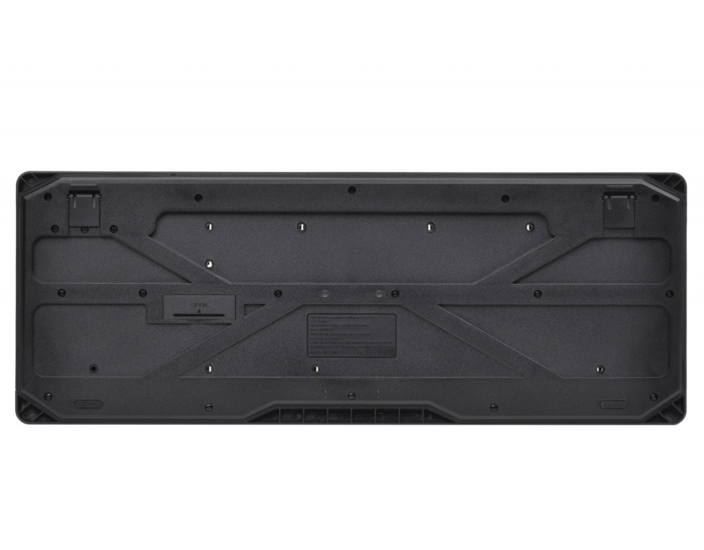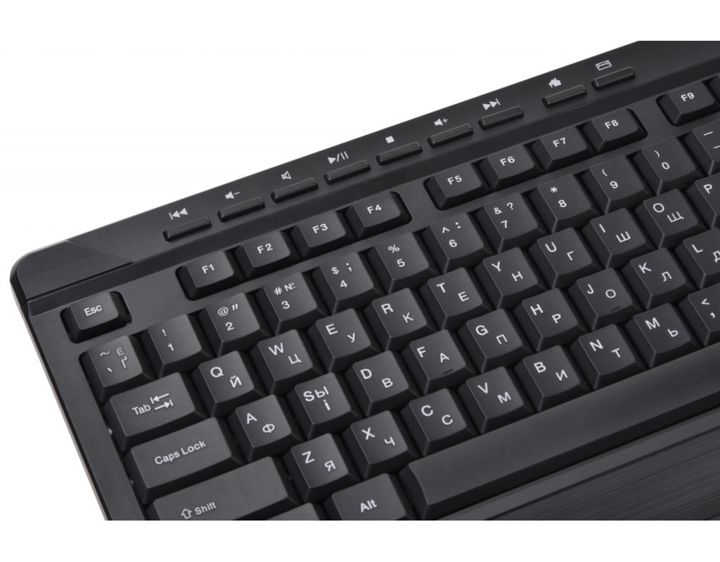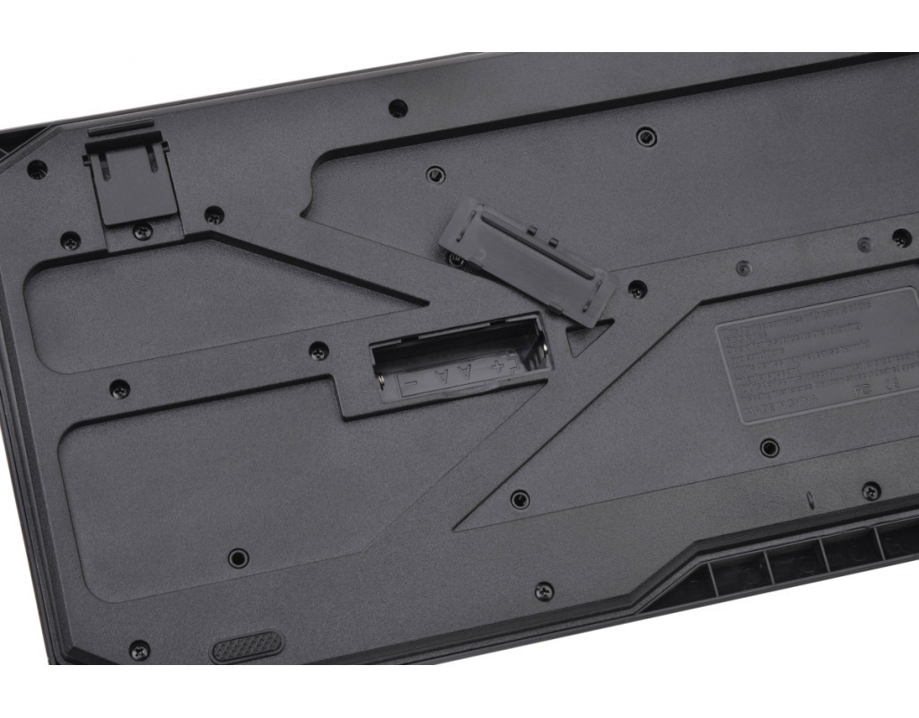 | Бездротовий комплект складається з повнорозмірної клавіатури, яка оснащена рядом функціональних клавіш та маніпулятора з симетричною формою. Клавіатура виконана з чорного полікарбонату з матовою поверхнею. |