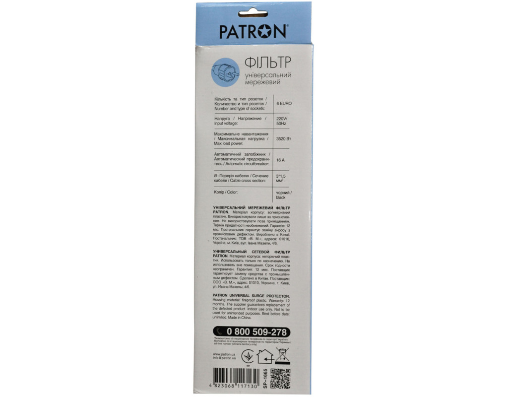 Patron SP-1655 вирізняється особливими перевагами, зокрема наявністю одного зручного вимикача для швидкого відключення всіх підключених пристроїв. Це дозволяє зекономити електроенергію та мінімізувати ризики перевантаження мережі або інших неприємностей, пов'язаних з електричними скачками.