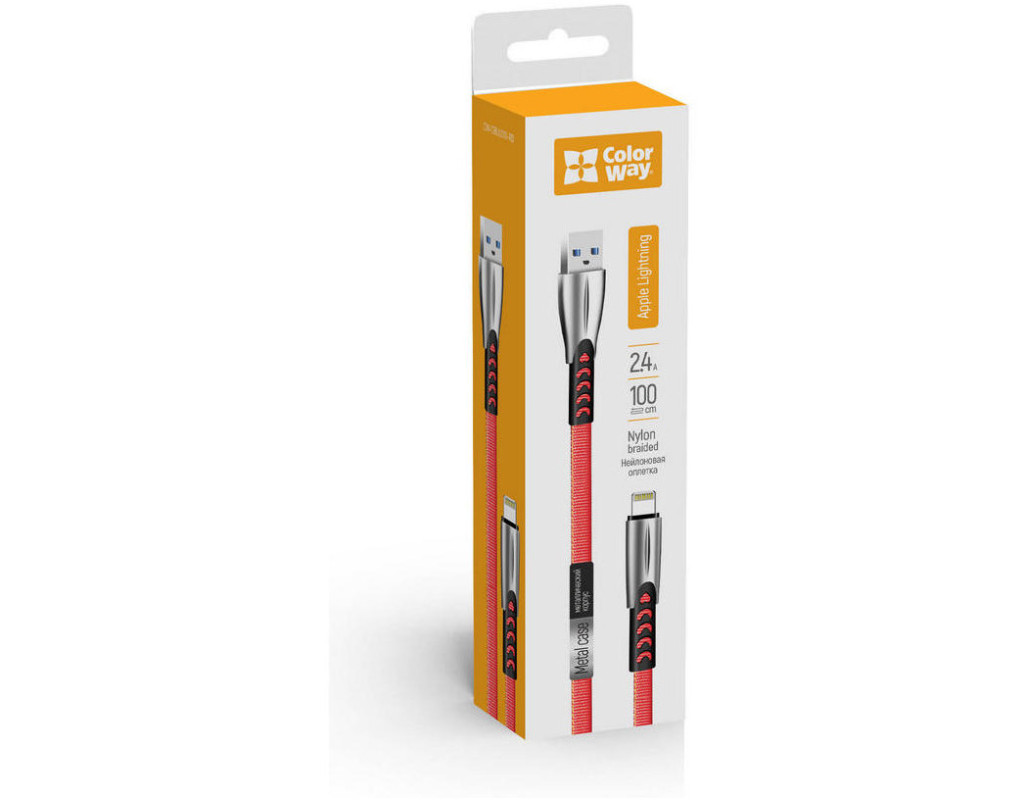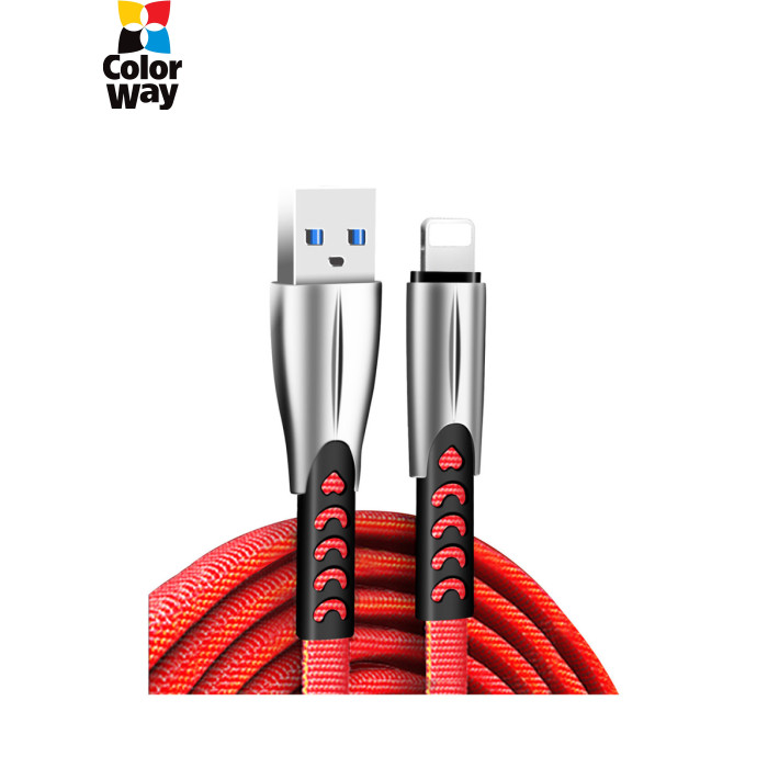 Дата кабель USB 2.0 AM to Lightning 1.0m zinc alloy red ColorWay (CW-CBUL010-RD)