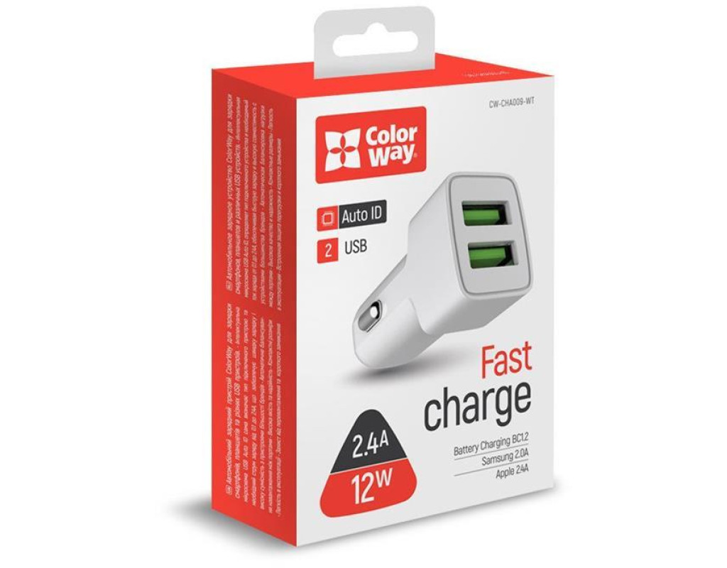 | Автомобільний зарядний пристрій Colorway 2USB AUTO ID 2.4A (12W) white - це потужний адаптер, який оснащений двома портами USB із загальним навантаженням на один / два порти до 2.4А. Два роз"єми мають автоматичну балансування навантаження між портами, а сумарна вихідна потужність досягає 12 Вт. Зарядний пристрій має продуману конструкцію, яка дозволяє одночасно підключати два пристрої для зарядки без будь-яких труднощів. Швидкий зарядний пристрій оснащений інтелектуальним чіпом для захисту ваших пристроїв від короткого замикання, перенапруги, перегріву і перевантаження по струму. Вогнестійкий корпус ABS не буде перегріватися при зарядці, забезпечуючи відмінну продуктивність, незалежно від подряпин, ударів або падінь. Пружинні фіксатори на корпусі зарядного пристрою забезпечують надійну фіксацію всередині роз"ємів прикурбвачів різних типів. Широкий діапазон вихідної напруги 12В/24В дозволяє використовувати зарядний пристрій в самих різних моделях автомобілів.