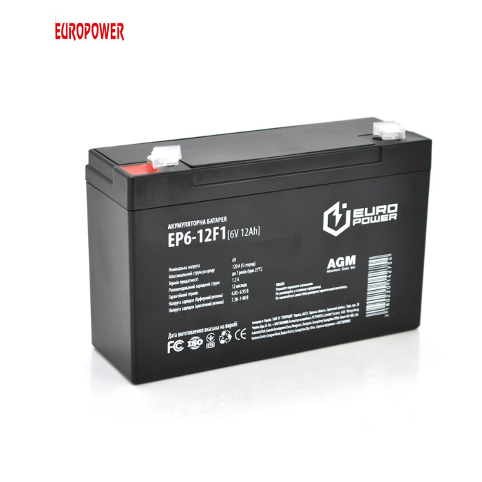 | Акумуляторна батарея EUROPOWER AGM EP6-12F1 6 V 12 Ah ( 150 x 50 x 95 (100) ) Black Q10 |