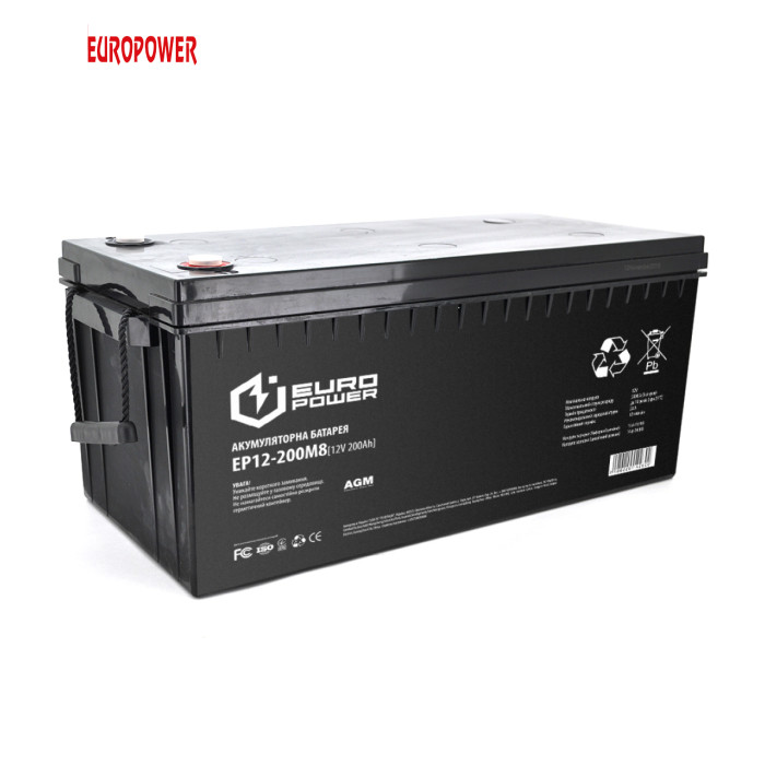 | Акумуляторна батарея EUROPOWER AGM EP12-200M8 12V 200Ah (522 x 240 x 219) Black Q1 / 18 |