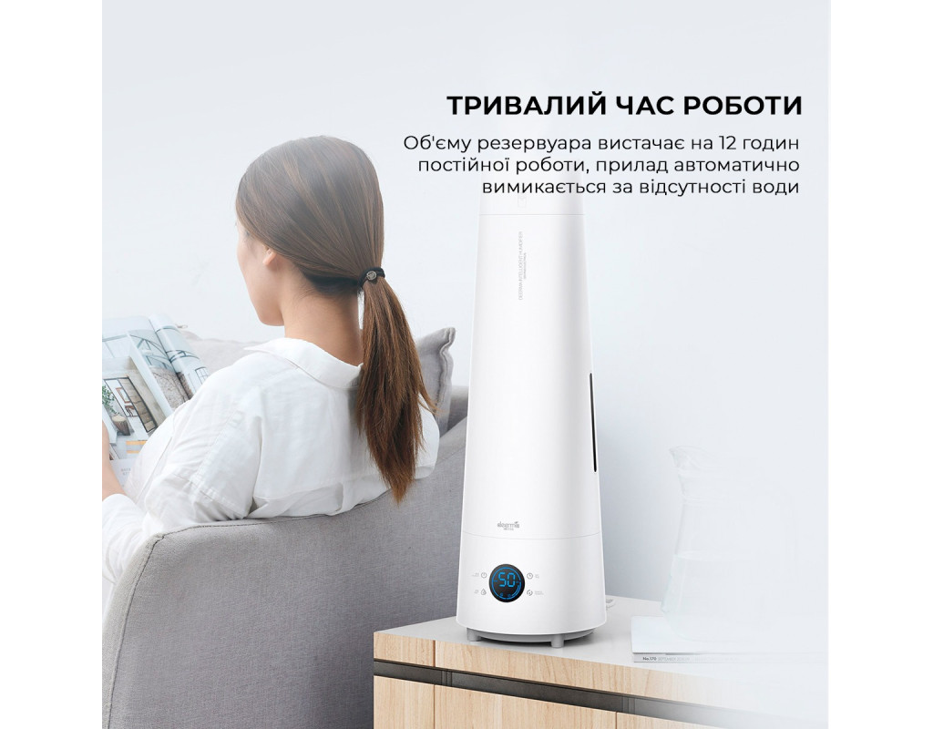 DEERMA DEM-LD220 – це компактний зволожувач повітря, обладнаний таймером відключення і 4-х літровою ємністю для води. Під впливом ультразвукових коливань залита в ємність вода «розділяється» на частинки розміром від 1 до 5 мкм, що дозволяє їм насичувати вологою приміщення. Крім того, перед розпиленням, вода проходить обробку під впливом ультрафіолетових променів, що дозволяє знищити до 99.99% бактерій. Дистанційне керування У комплекті з DEERMA DEM-LD220 поставляється ПДУ, за допомогою якого ви зможете керувати роботою ультразвукового зволожувача. Щоб ви не шукали пульт по квартирі, він може бути закріплений на магнітному тримачі зволожувача. LED екран Зволожувач обладнаний LED екраном на якому ви зможете побачити інформацію про недостатній об'єм води в резервуарі, допоможе вам ознайомитися з поточним рівнем вологості та режимом роботи пристрою. Кілька робочих режимів. 12-годинний таймер Для вибору оптимального рівня вологості, в DEERMA DEM-LD220 передбачено 3 робочих режими, які ви можете активувати на свій розсуд. Якщо в жаркий літній день, ви хочете повернутися в зволожене приміщення, просто залийте води в резервуар зволожувача, і встановіть таймер. Відсік для ефірних масел Для сеансу ароматерапії та оздоровлення, в DEERMA DEM-LD220 передбачена спеціальна комірка для ефірних масел. Додайте кілька крапель олії чайного дерева, ялиці або евкаліпта, щоб розслабитися після важкого робочого дня і при цьому зміцнити свій імунітет. |