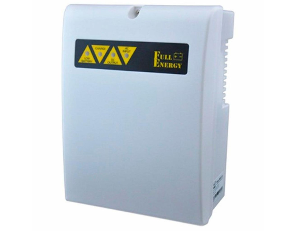 Блок безперебійного живлення Full Energy BBGP-125 це ефективне рішення для забезпечення надійного електропостачання у разі збоїв в роботі основної мережі. Пристрій призначений для роботи від мережі змінного струму з напругою 100-240В і частотою 50-60Гц, забезпечуючи стабілізовану вихідну напругу DC 12-14В через клемний роз'єм. У режимі очікування блок автоматично перемикається на живлення від акумулятора, видаючи напругу DC 10-12.5В при максимальному навантаженні до 5A і передбаченим струмом заряду 0.8A. Конструкція пристрою містить відсік для акумулятора на 12В і 7А·год. Важливо зазначити, що акумулятор для цього ББЖ не входить до стандартного комплекту постачання і має бути придбаний окремо. Блок виготовлено в міцному пластиковому корпусі із захисною кришкою, що забезпечує його довговічність і захист від фізичних впливів. Захисні функції пристрою включають механізми проти перенапруги, короткого замикання, перевантаження за струмом і некоректного заряду або розряду акумулятора, забезпечуючи високий рівень безпеки під час експлуатації. Використання блоку безперебійного живлення Full Energy BBGP-125 можливе в різних сценаріях, що вимагають безперебійного електроживлення, як-от системи відеоспостереження, охоронні сигналізації та інші важливі системи. Завдяки функції самостійного відновлення, пристрій здатний автоматично повертатися в робочий стан після усунення неполадок, що мінімізує потребу в обслуговуванні та підвищує загальну надійність системи. Основні переваги: