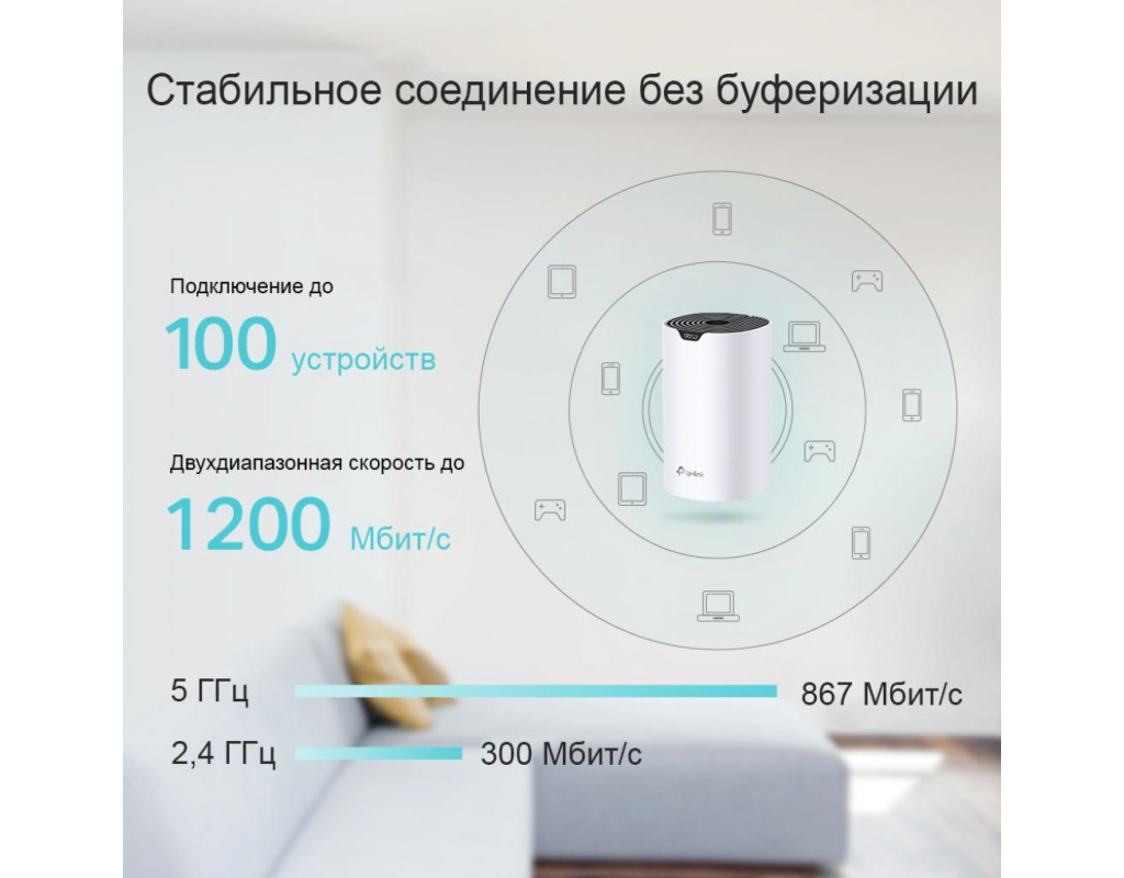 TP-Link Deco S4 - це Wi-Fi Mesh система з трьох модулів, яка здатна працювати у двох діапазонах. Вона призначена для побудови єдиної Wi-Fi мережі на великій площі (до 510 метрів квадратних). Здатна забезпечувати високу швидкість передачі даних. Отримайте відмінне Wi-Fi покриття і швидке, стабільне підключення до мережі Інтернет. Можливостей системи ідеально вистачить для перегляду веб-сайтів, завантаження файлів, стрімінга або онлайн-ігор, також Deco S4 може виконувати роль роутера або точки доступу. Така система дозволить вільно переміщатися із мобільним гаджетом по великому будинку, не відчуваючи розриву передачі даних. Переходьте на інший поверх і продовжуйте переглядати відео, без гальмувань та затримок. Завдяки стандарту Wi-Fi 802.11ac можна буде підключити до однієї мережі до 100 пристроїв. |