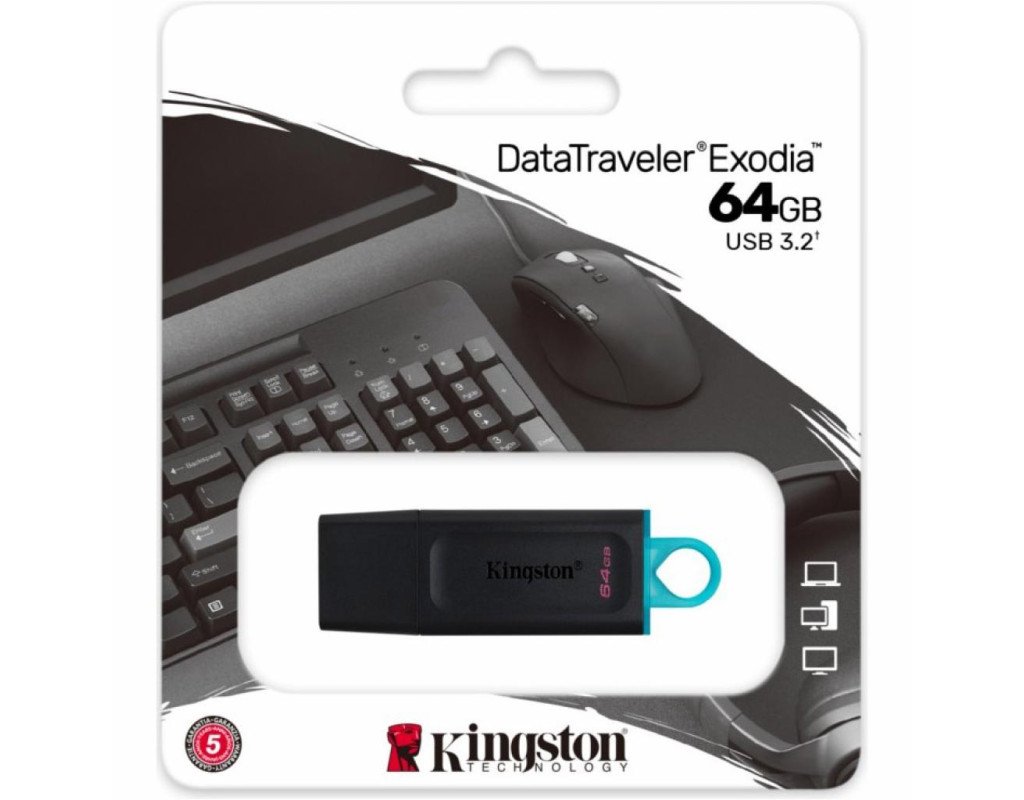 Накопичувач Kingston DataTraveler Exodia забезпечує продуктивність USB 3.2 Gen 1 для простого доступу до ноутбуків, настільним ПК, моніторів і інших цифрових пристроїв. DT Exodia дозволяє швидко передавати і зручно зберігати документи, музику, відеофайли і так далі. Практична конструкція і стильні кольори роблять цей накопичувач ідеальним рішенням для повсякденного використання на роботі, вдома, в школі або будь-якому іншому місці. Особливості: