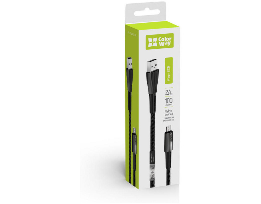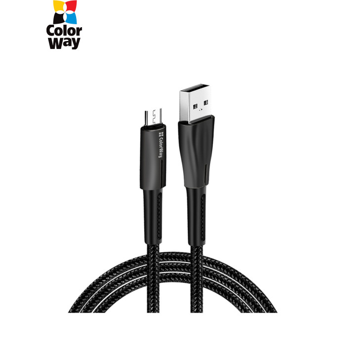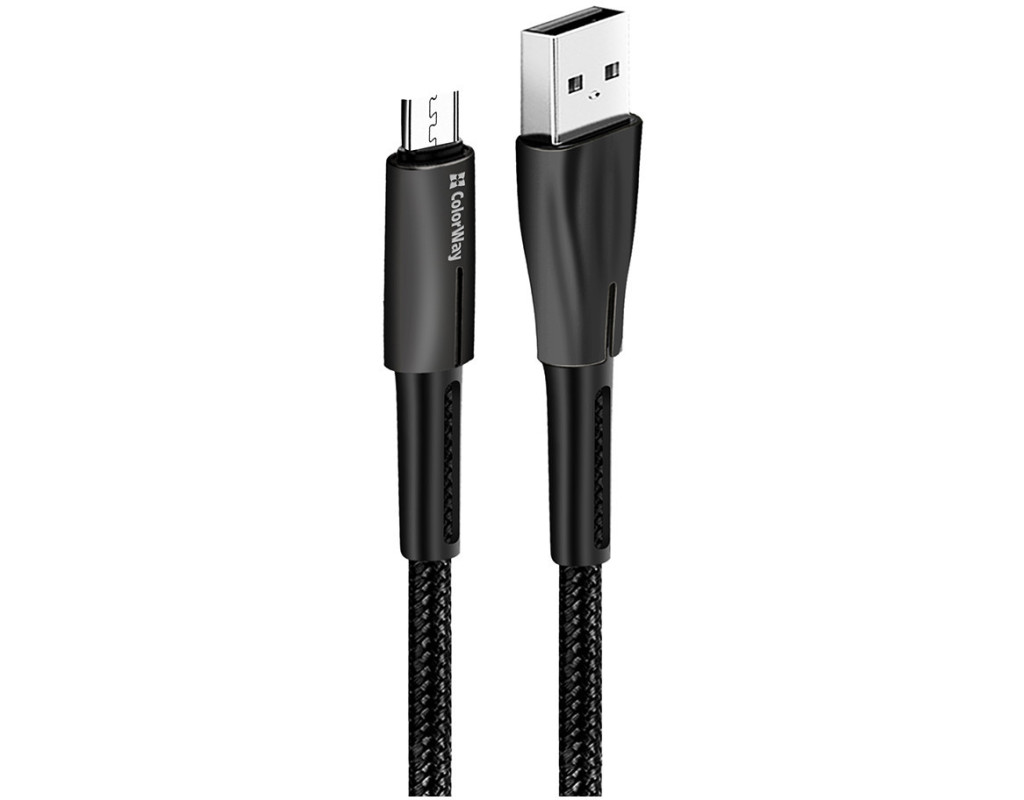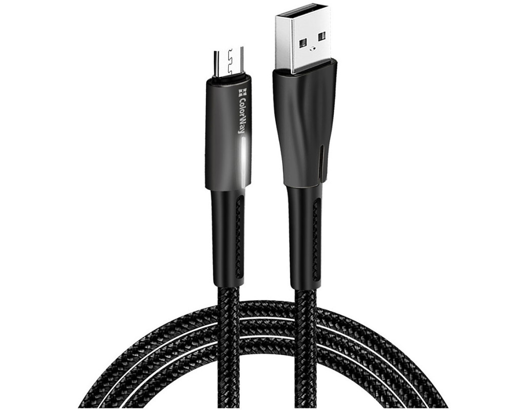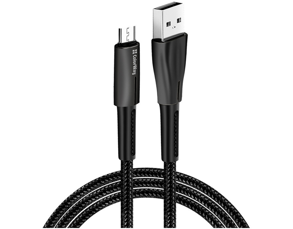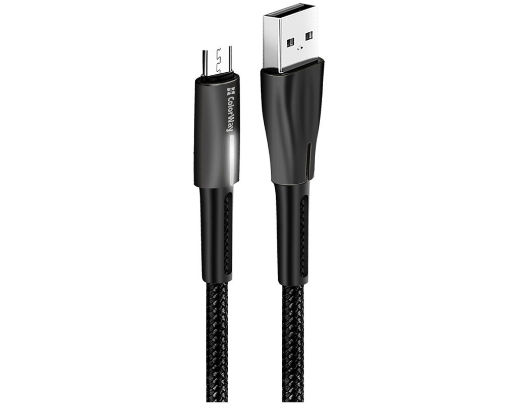 Дата кабель USB 2.0 AM to Micro 5P 1.0m zinc alloy + led black ColorWay (CW-CBUM035-BK)