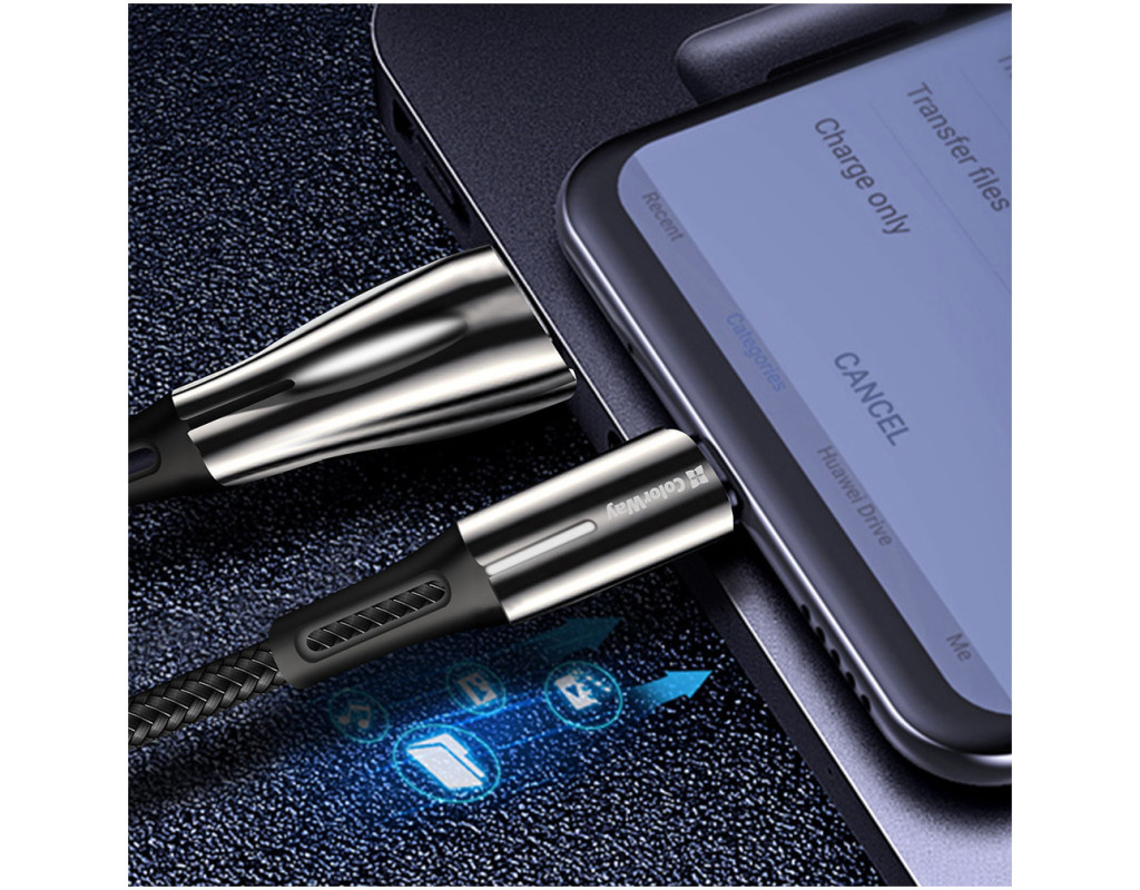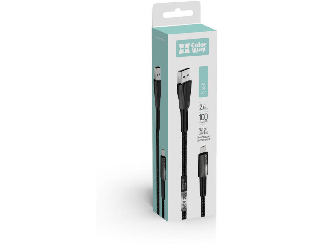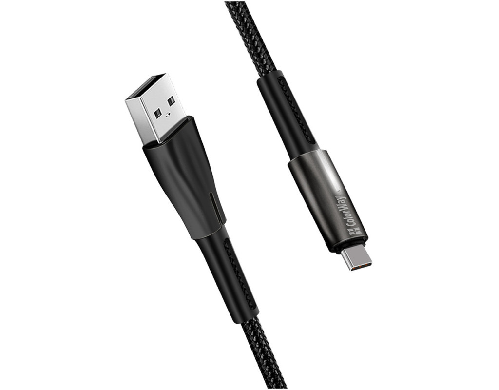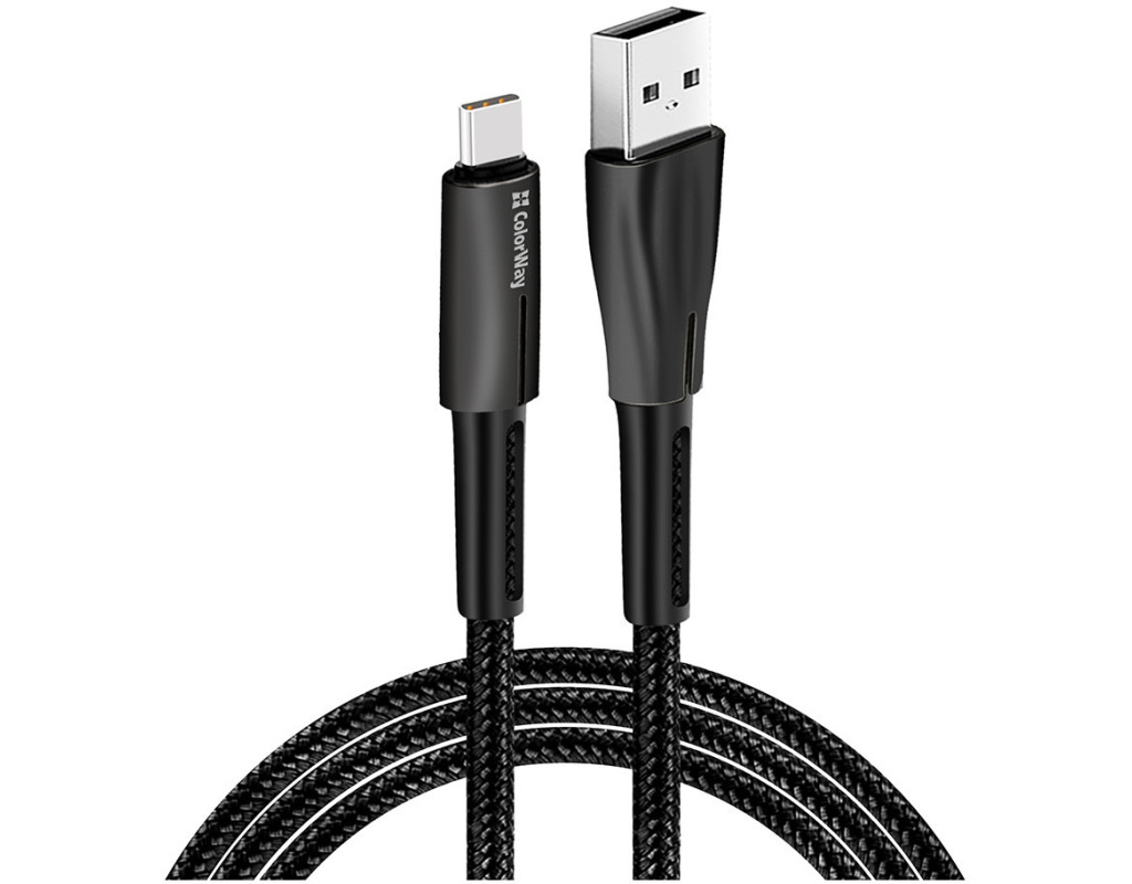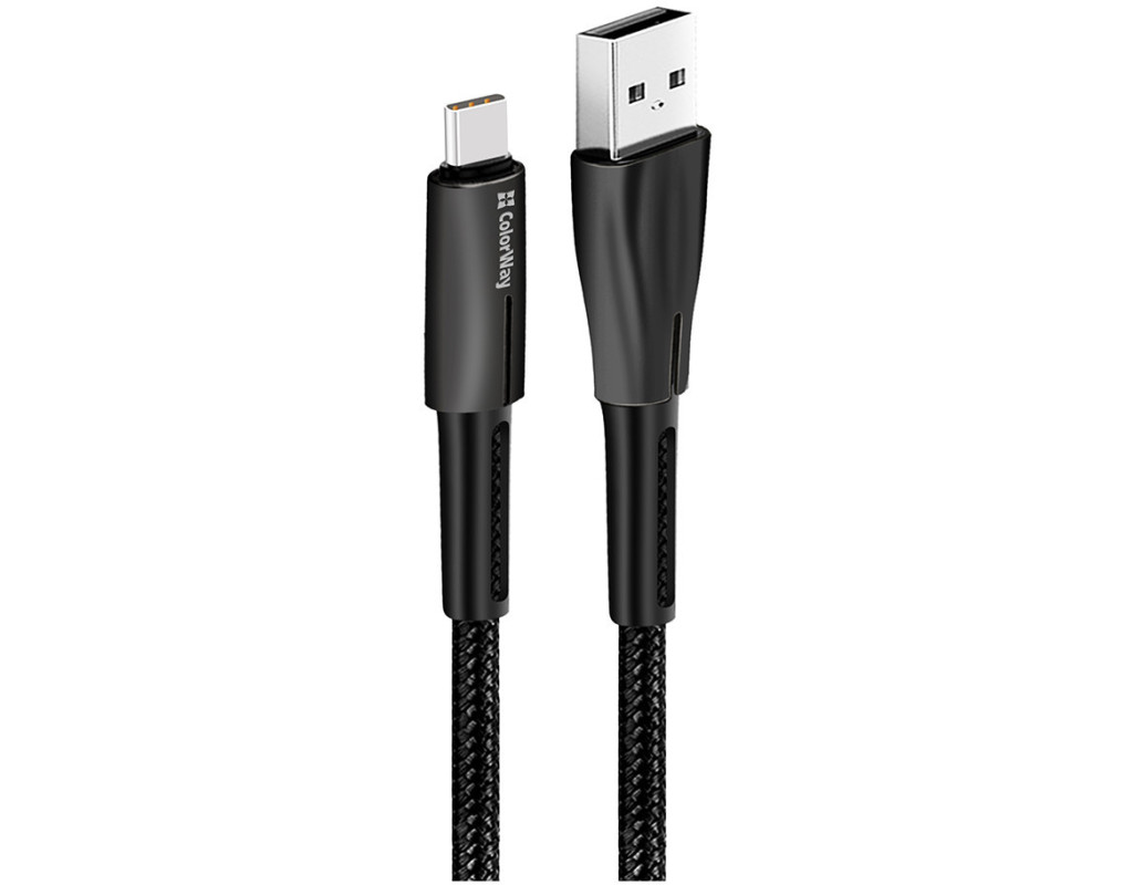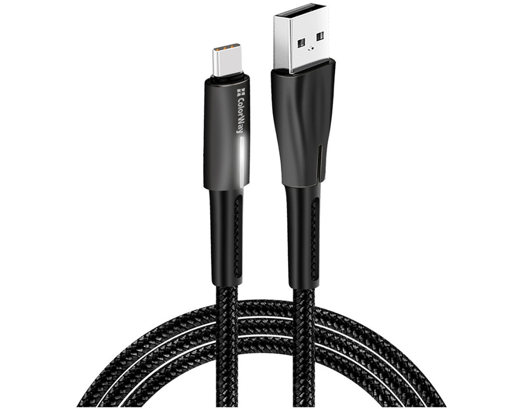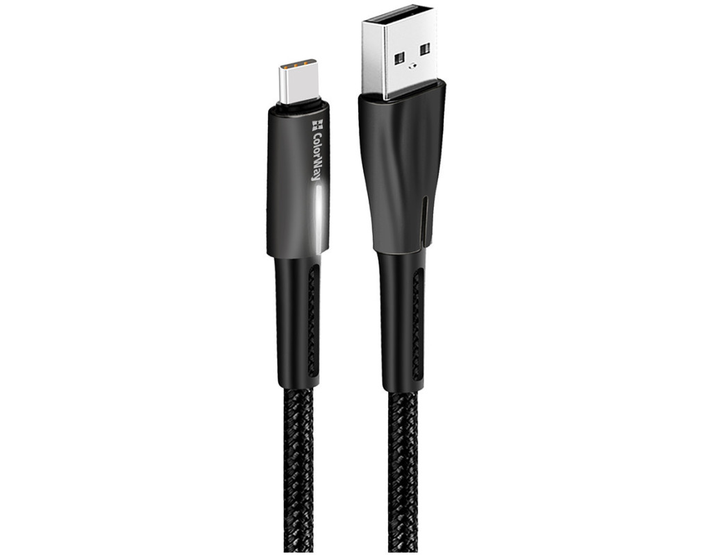 Дата кабель USB 2.0 AM to USB-C 1.0m zinc alloy + led black ColorWay (CW-CBUC035-BK)