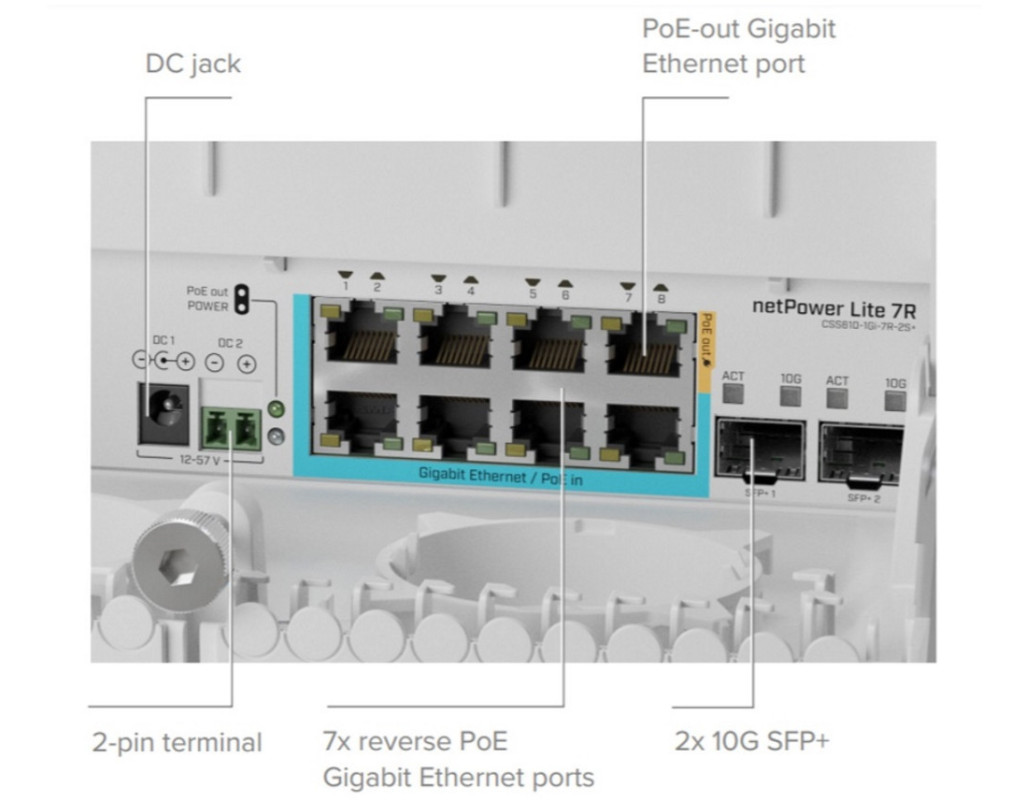 | Комутатор мережевий Mikrotik CSS610-1Gi-7R-2S+OUT – це висококласний керований пристрій, розроблений для забезпечення надійної та швидкісної передачі даних у вуличних умовах. Завдяки своїй універсальності, CSS610 ідеально підходить для використання в концепції GPEN, поєднуючи переваги Ethernet з оптоволоконними мережами. Особливістю цього комутатора є наявність 10 портів, серед яких 7 — це PoE+ порти, здатні забезпечувати до 15.4 Вт на кожен порт за стандартом PoE 802.3af (PSE). Це дозволяє суттєво зменшити кількість кабелів, що спрощує встановлення у місцях з обмеженим доступом. Завдяки своєму пластиковому корпусі, Mikrotik CSS610-1Gi-7R-2S+OUT здатний працювати у різноманітних умовах, включаючи вологі горища або ліфтові шахти. Крім того, зовнішнє виконання забезпечує високу стійкість до погодних умов, що робить його ідеальним для встановлення на таких опорах, як стовпи або стіни. Комутатор обладнано двома 10G SFP+ портами для оптоволоконного підключення, які забезпечують швидкість і масштабованість мережі. Це особливо важливо для інтернет-провайдерів, які надають послуги у висотних або багатоповерхових будинках. Функція автoвизначення MDI/MDIX підвищує зручність використання, а можливість віддаленого управління дозволяє налаштовувати та моніторити пристрій з будь-якої точки світу. З виключною пропускною здатністю у 28 Gbps та комутаційною здатністю в 56 Gbps, Mikrotik CSS610 забезпечує швидкість обробки пакетів до 41.7 Mpps, що гарантує високоефективну роботу навіть у складних умовах мережевого навантаження. |