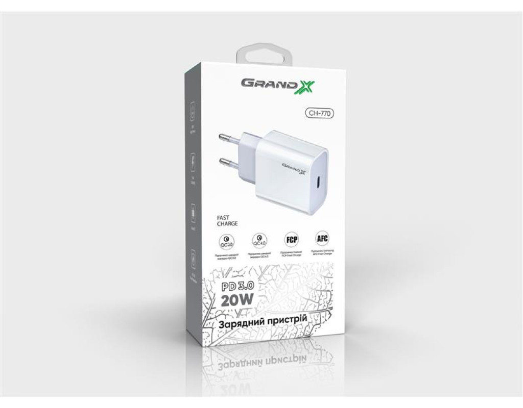 | Новий зарядний пристрій Grand-X CH-770 20W являє собою зарядку нового покоління з більш сучасним роз’ємом Type-C, який поступово витісняє звичний USB-A. Саме цей роз’єм в поєднанні з потужністю 20W дозволяє реалізувати швидку зарядку іPhone 12 і старіших моделей від iPhone 8 і вище через протокол PD 3.0, і останню версію популярного стандарту Quick Charge 4.0. Підтримуються також протоколи швидких зарядок QC3.0, FCP, AFC. З іншими протоколами пристрій буде працювати в звичайному режимі. Для досягнення найкращого результату рекомендується використовувати якісні кабелі, які забезпечать передачу потужності яку дає зарядний пристрій без втрат. Корпус виготовлений з вогнетривкого пластику. |