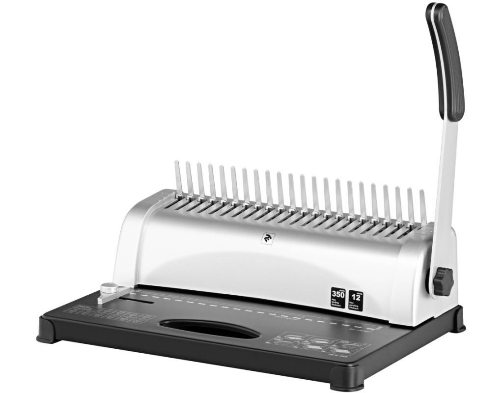 Вид переплетіння - пластикова пружина, спосіб перфорації - горизонтальна, максимальна товщина документа - 350 аркушів, 420 х 300 х 190 мм, 4 кг