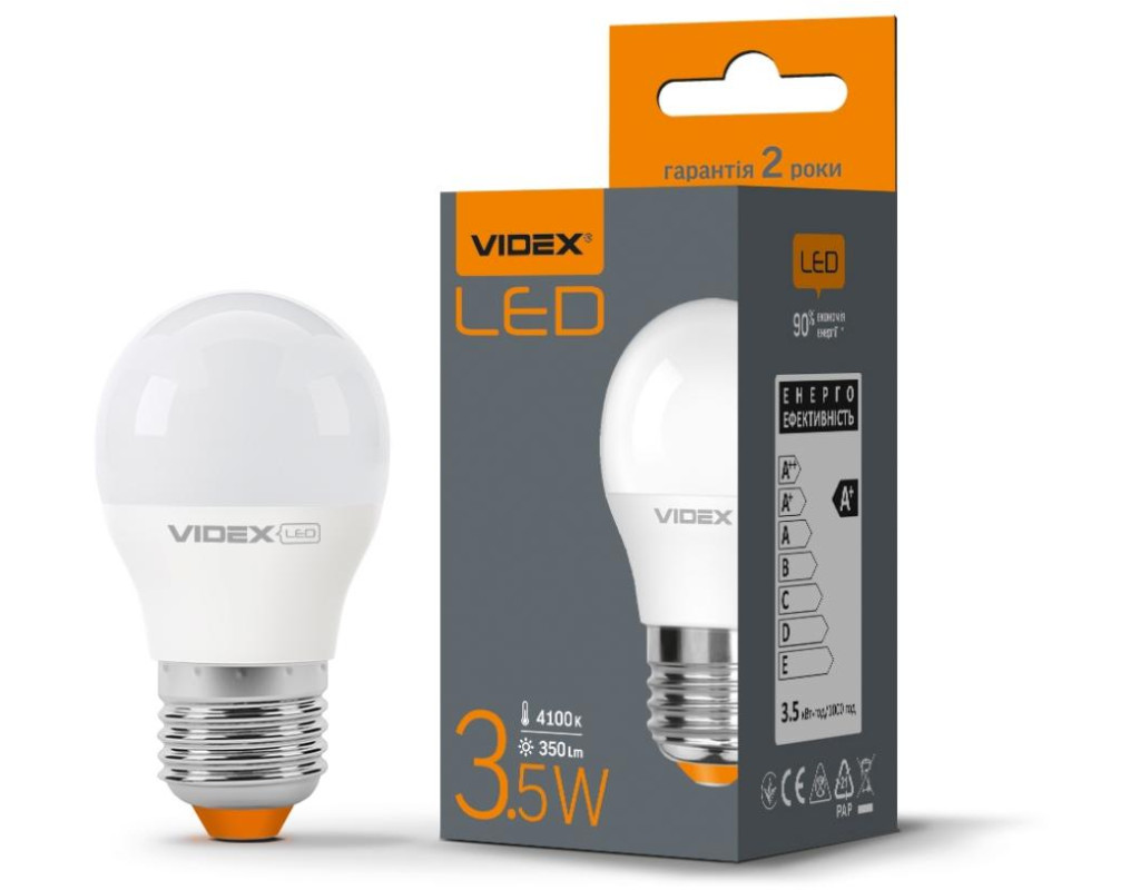 LED лампа VIDEX G45e 3.5W E27 4100K - високотехнологічний джерело світла. Забезпечує рівний світловий потік і максимальну потужність з першої секунди роботи. Призначена для всіх типів побутових світильників, підходить для загального освітлення приміщень, торгових залів і вітрин, промислових підприємств. Ідеальна для декоративного, місцевого та спрямованого освітлення. Світлодіодні лампи покращують якість штучного освітлення, а також допомагають економити на комунальних платежах. Завдяки мінімальній спотворення природних кольорів, якісному світла, різноманітності моделей і малому енергоспоживанню - світлодіодні лампи стали головним джерелом світла у всіх сферах людської діяльності. Особливості