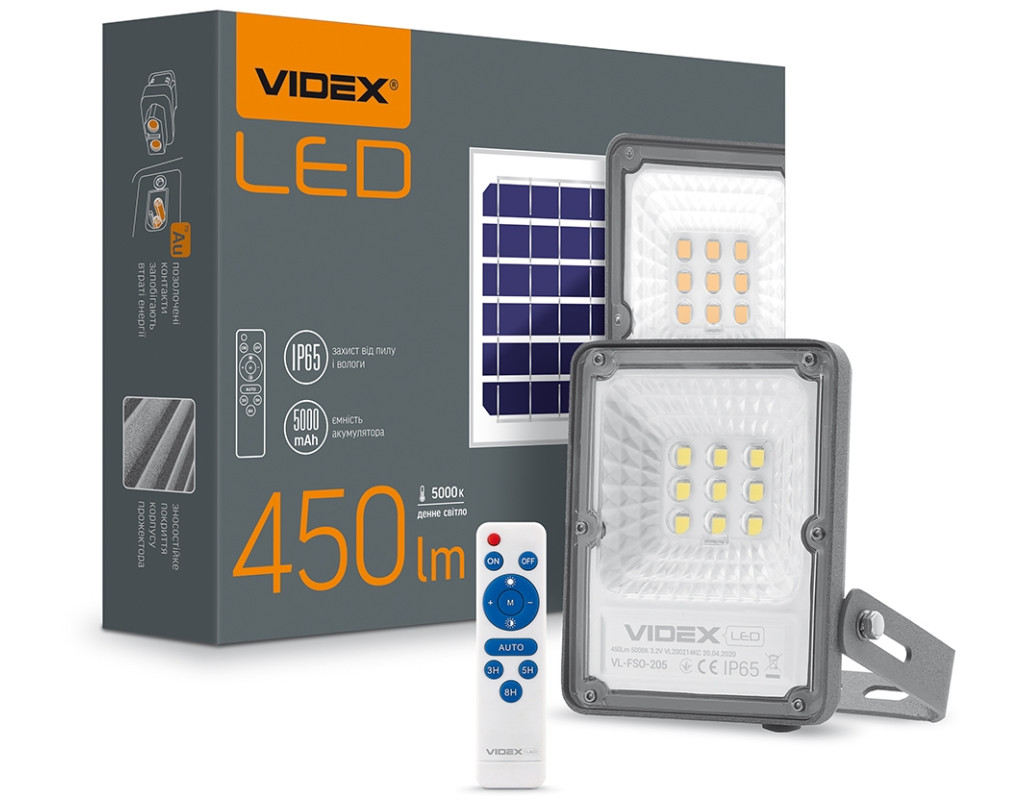 Автономний прожектор VIDEX, який працює абсолютно автономно і заряджається від сонячної панелі. Використовуючи цей прожектор, ви будете абсолютно незалежні від проблем з можливою відсутністю електроенергії у вас вдома або на дачі, оскільки акумуляторна батарея (вбудована в прожектор) заряджається протягом цілого дня від сонця, завдяки чому він зможе працювати автономно до 12-ти годин. Даний світлодіодний прожектор доцільно використовувати всюди, де немає можливості підключитися до електромережі або ж навантаження по електромережі дуже обмежена. Головною перевагою використання прожектора на сонячній батареї є відсутність будь-яких витрат на електроенергію, а також: