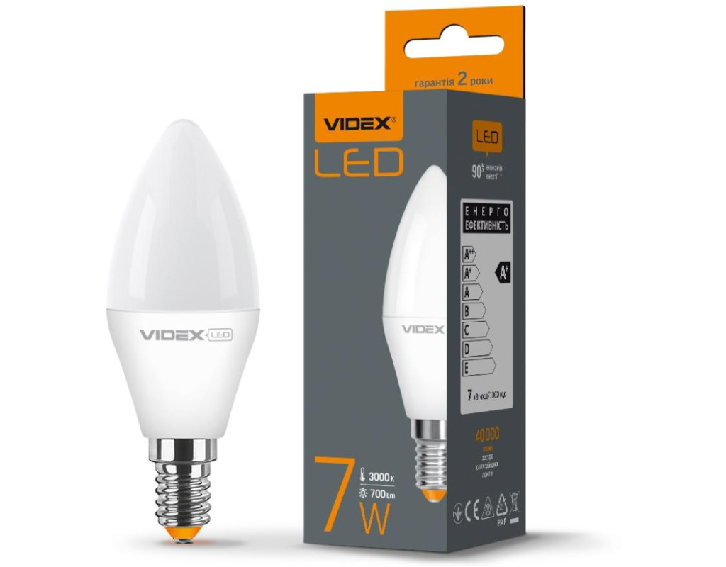 LED лампа VIDEX C37e 7W E14 3000K - високотехнологічний джерело світла. Забезпечує рівний світловий потік і максимальну потужність з першої секунди роботи. Призначена для всіх типів побутових світильників, підходить для загального освітлення приміщень, торгових залів і вітрин, промислових підприємств. Ідеальна для декоративного, місцевого та спрямованого освітлення. Світлодіодні лампи покращують якість штучного освітлення, а також допомагають економити на комунальних платежах. Завдяки мінімальній спотворення природних кольорів, якісному світла, різноманітності моделей і малому енергоспоживанню - світлодіодні лампи стали головним джерелом світла у всіх сферах людської діяльності. Особливості