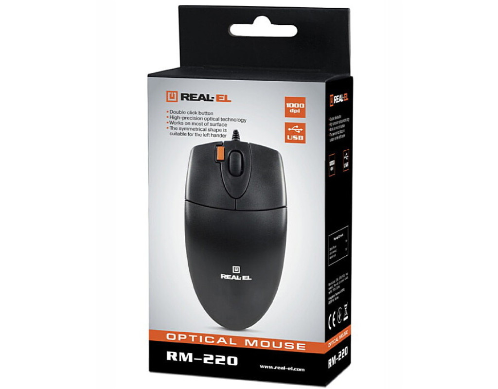 | Високоточна оптична технологія дає змогу маніпулятору REAL-EL RM-220 працювати практично на будь-якій поверхні. Особливості: 3 + 1 клавіші, колесо прокручування, інтерфейс USB, природна форма маніпулятора зручна для руки, кнопка подвійного натиску. |