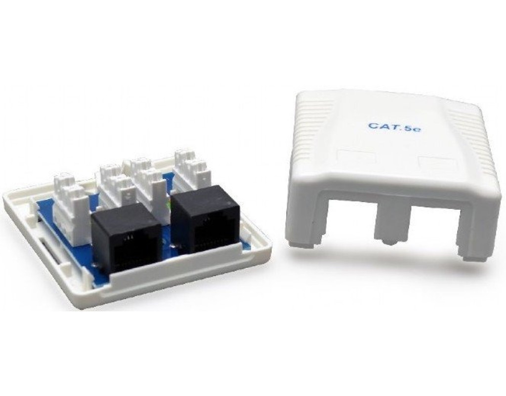 | Монтажний бокс з екранованими мережними роз"емами категорії 5E Характеристики Категорія: CAT5E Екранований: немає UTP Роз"єми: 2 Колір білий У комплекті: Липка кріпильна стрічка |