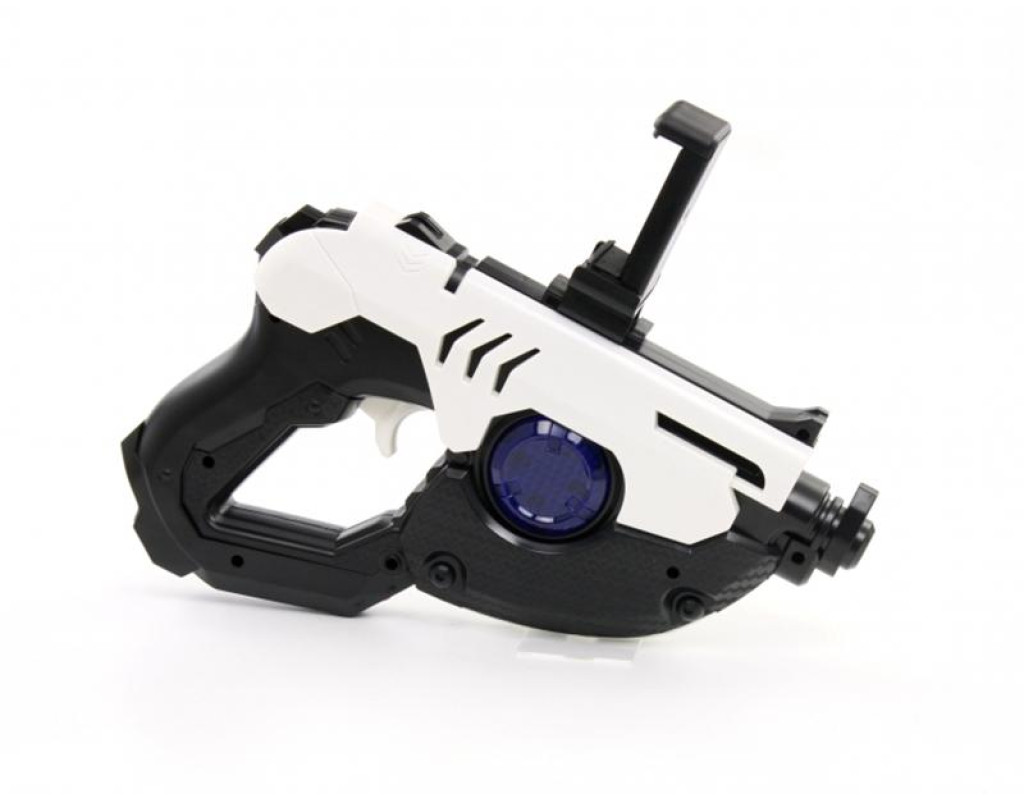 Гаджет по виду нагадує справжній бластер, що ще більше підсилює враження в грі і вам дійсно доведеться натискати на спусковий гачок і цілиться в супротивника повертаючись урізнобіч так, як бластер сприймає зміну положення і кут огляду змінюється з поворотом тіла гравця, а грати можна як в приміщенні так і на вулиці. Синхронізація зі смартфоном здійснюється за допомогою інтерфейсу Bluetooth. Додаток для мобільного пристрою можна завантажити на Playmarket або Appstore залежно від моделі смартфона. Для гри потрібно завантажити по QR коду, що йде в комплекті з гаджетом додаток, а так само ігри і встановити їх на мобільний пристрій, а сам смартфон закріпити на гаджеті і потім синхронізувати пристрої за допомогою Bluetooth. Бластер виконаний з пластику високої якості і має ергономічну форму щоб виключити втому під час гри і підійде як дорослим так і дітям. Живлення гаджета здійснюється від двох батарей ААА. AR-Glock gun ProLogix NB-007AR подарує масу яскравих вражень від захоплюючих шутерів і цей пристрій доповненої реальності робить відеогру по справжньому рухливою. |