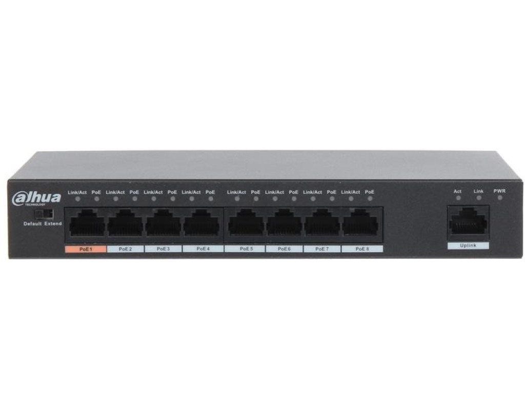 | Dahua PFS3009-8ET-96 — це 8-портовий PoE комутатор із підтриманням режиму роботи CCTV (передавання PoE на лінії до 250 метрів). Забезпечує швидкість передавання через порти у стандартному режимі 100 Мбіт/сек, у режимі CCTV 10 Мбіт/сек. Зміна режиму роботи здійснюється DIP-перемикачем на лицьовій панелі пристрою. Особливості: Стандарти PoE: IEEE802.3af, IEEE802.3at, IEEE802.3X Підтримання самодіагностики MDI/MDIX Таблиця MAC 2K Підтримання PoE, PoE+, Hi-PoE Металевий корпус Підтримання режиму CCTV (передавання PoE на лінії до 250 метрів) |