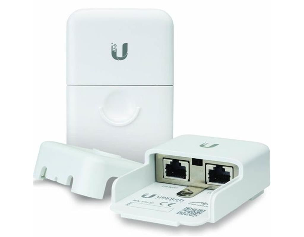 | Оновлена ??версія Ubiquiti Ethernet Surge Protector ETH-SP. Має поліпшену захист у порівнянні з класичним Ethernet Surge Protector. Велика частина устаткування Ubiquiti вже має вбудований захист від перепадів напруги, однак при сильному перевищенні допустимих норм використання ETH-SP значно підвищує надійність всієї системи, додатково забезпечуючи захист обладнання від ураження високовольтним розрядом і запобігаючи його вихід з ладу. ETH-SP може використовуватися як з пристроями, випущеними компанією Ubiquiti, так і з обладнанням сторонніх виробників, незалежно від підтримки технології харчування PoE. Підключення проводиться в розрив лінії, максимально близько до клієнта захисту. |