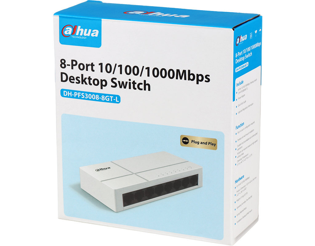 | 8-портовий 10/100/1000 Мбіт/с настільний комутатор DH-PFS3008-8GT-L являє собою просте рішення для переходу на гігабітний Ethernet. Підвищить швидкість ваших магістральних з’єднань, використовуючи компактний гігабітний комутатор прямо на Вашому робочому столі.