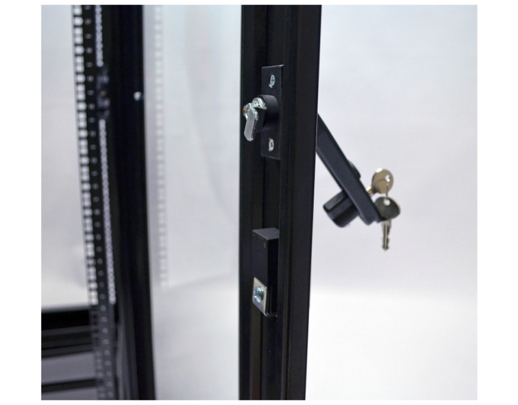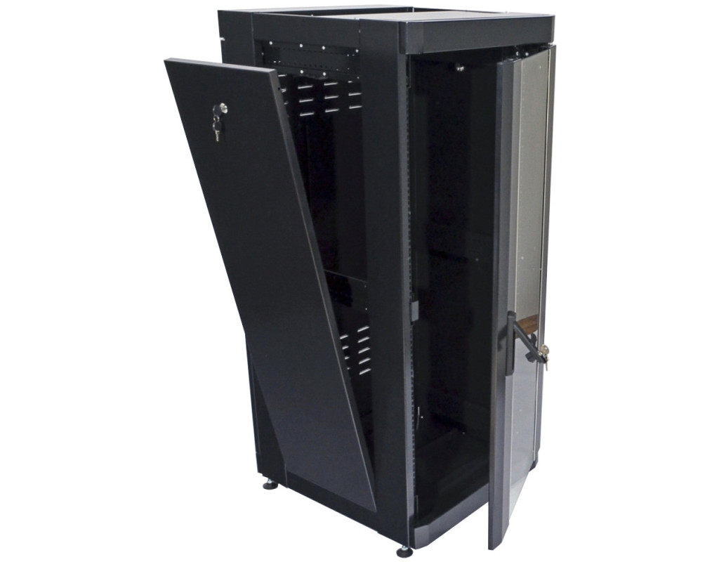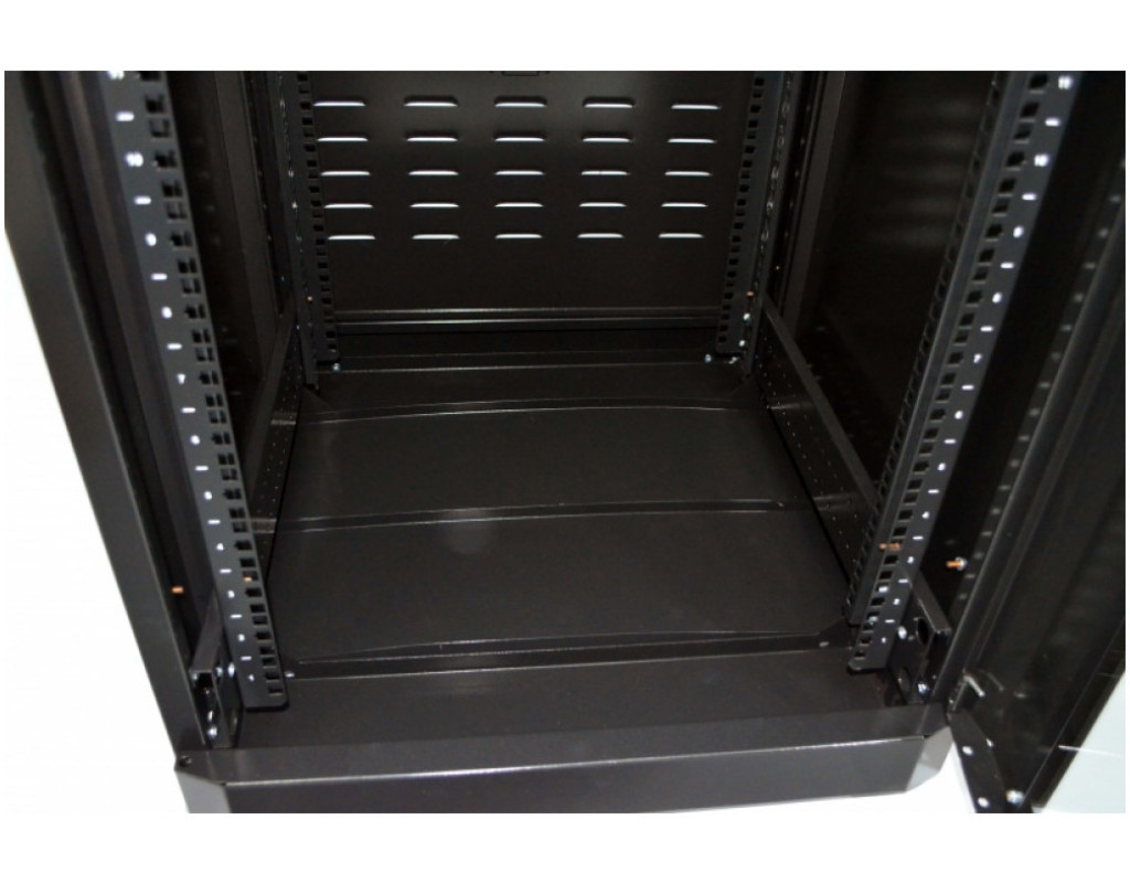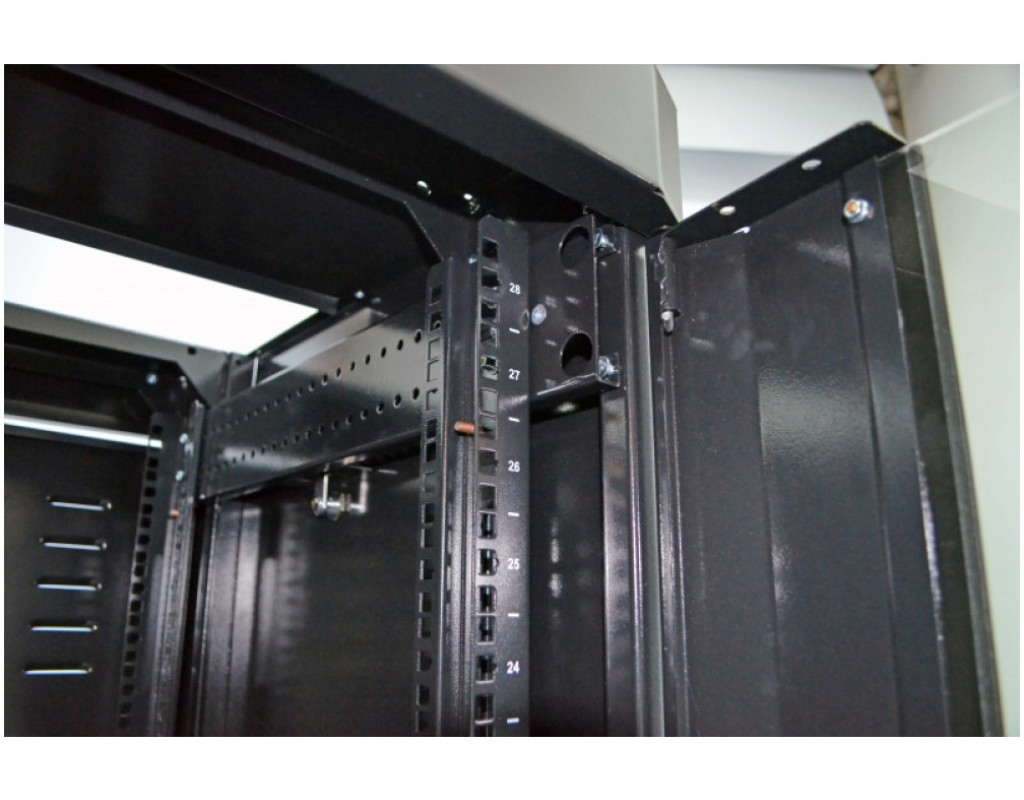 Для примусової вентиляції додатково використовуються 3-вентиляторні блоки, монтовані в дах або в підлогу, можливе встановлення більш ніж одного блока, які між собою з'єднуються шнуром живлення С13-С14. Додатково можна встановити щітковий увід. Ніжки для шафи йдуть у комплекті. Вентиляторні блоки та шнури живлення, що з'єднують їх, купуються окремо. |
