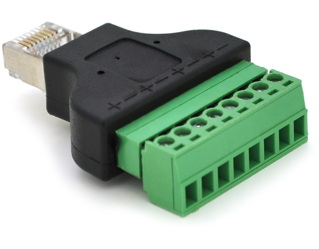 | Клемна колодка 8-розрядна Клемна колодка 8-розрядна + RJ45 8P8С папа - перехідник для передачі сигналу за допомогою крученої пари між пристроями, у одного з яких немає роз`єму RJ45. Характеристики: • інтерфейс - RJ45 • кількість контактів: 8; • ширина викрутки для затиску клем: до 2.5 мм; • розміри: 38 х 32 х 18 мм; • вага: 19 м |