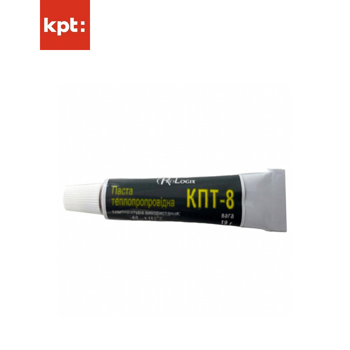 | Термопаста 17г КПТ-8, біла. ДЕРЖСТАНДАРТ 19783-74, Робочий інтервал температур: від -60 до +180 °C, Коефіцієнт теплопровідності, Вт/(м·К), не менше: -50 °C - 1,0; 20 ° C - 0,7; 100 ° C - 0,65. |