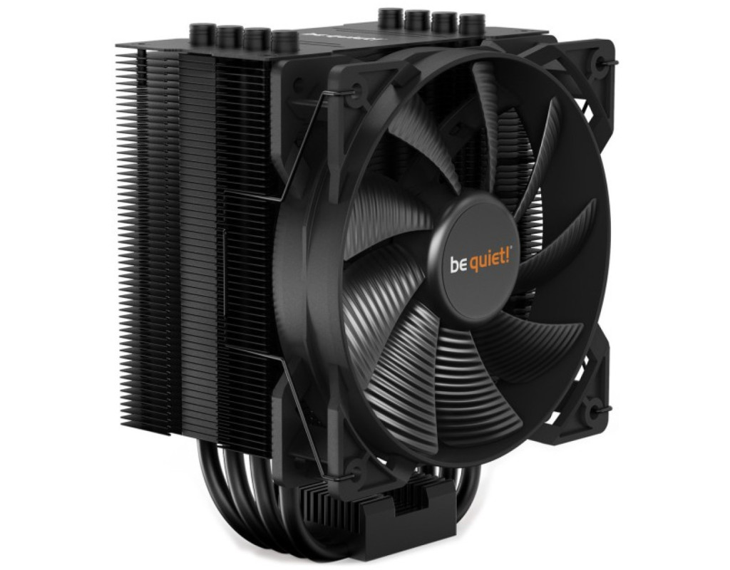 Б/В Кулер Be quiet! Pure Rock 2 Black (BK007) Для процесорів - INTEL, AMD, під сокет - 2011-3, 1151, AM4, 2066, 1200, 1150, 1155, AM3, AM3+, матеріал радіатора - алюміній, діаметр вентиляторів - 120 мм обертання вентиляторів - 1500 об/хв, система підшипників - Підшипник ковзання з гвинтовою нарізкою (Rifle bearing), рівень шуму - 30 dB, роз'єми живлення - 4-pin, Підсвічування - ні, 4 теплові трубки