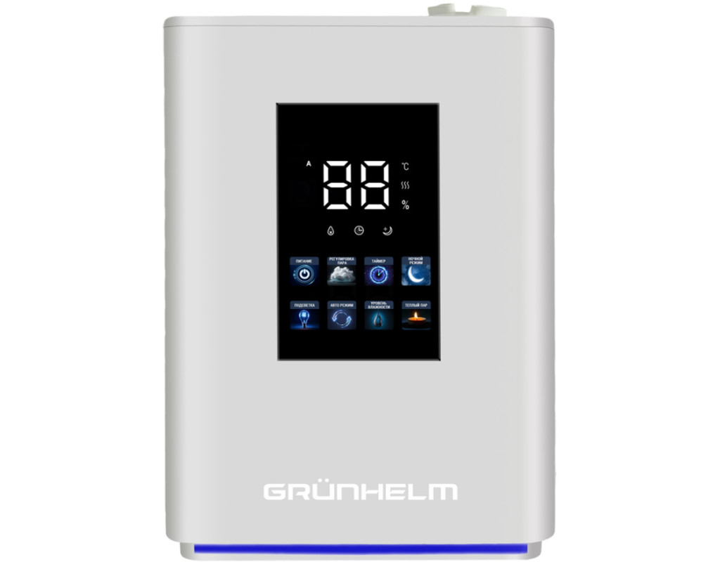 Опис Зволожувач повітря - GHF-40MD (40 м кв, 5л, 350 мл/г) GRUNHELM Зволожувач повітря - GHF-40MD (40 м кв, 5л, 350 мл/г) GRUNHELM - ультразвуковий зволожувач дозволить підтримувати здорову атмосферу та затишок у вашому будинку. Виконаний у компактному корпусі розмірами 223x194x348 мм, він не займе багато місця в приміщенні і при цьому буде ефективний на площі до 40 м2. У компактному корпусі зволожувача встановлений місткий 3 л резервуар для води, якого вистачить для кількох повноцінних процедур зволоження повітря. Керувати зволожувачем легко за допомогою тач панелі та дистанційного пульта. Оснащений функцією автоматичного відключення, надійно захищений від перегріву у разі критичного зниження води у резервуарі. Особливості: