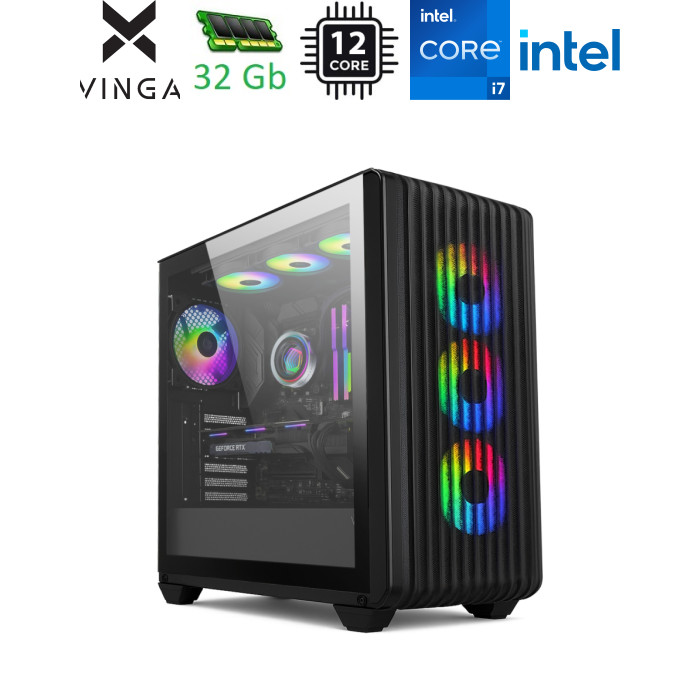| Комп'ютер Vinga Odin D9201 (I7M32G5070TIWP.D9201) розроблено для тих, хто цінує швидкість, високу продуктивність та готовий отримувати максимум від сучасних ігор та програм. Цей потужний ігровий ПК стане незамінним інструментом як для геймерів, так і для професіоналів, які працюють з ресурсоємними завданнями, такими як 3D-моделювання або відеомонтаж. У серці системи стоїть процесор Intel Core i7 серії 12700KF – справжній монстр із 12 ядрами та 20 потоками. Базова частота у 3.6 ГГц забезпечує стабільну та ефективну роботу в будь-яких умовах, а завдяки підтримці Boost режиму, частота може зростати до вражаючих 5.0 ГГц, що гарантує максимальну швидкість обробки складних задач. Цей процесор базується на чіпсеті Intel B760, що забезпечує надійну та стабільну роботу навіть під високими навантаженнями. Однією з визначальних характеристик цього ПК є використання дискретної відеокарти з обсягом графічної пам'яті 16 ГБ. Це робить Vinga Odin D9201 ідеальним вибором для ігор з максимальною графічною довершеністю, а також для професіоналів, що працюють з візуальним контентом. Завдяки передовій технології та великим обсягам пам'яті ви отримуєте не тільки реалістичні візуальні ефекти, але й високу стабільність роботи. Комп'ютер оснащено 32 ГБ оперативної пам'яті типу DDR5, що працює на частоті 6000 Mhz, забезпечуючи високу пропускну здатність та швидкодію системи. Це дозволяє вам працювати з великими файлами та одночасно використовувати кілька програм без будь-яких затримок або зависань. Для зручного зберігання даних у системі встановлено високошвидкісний SSD обсягом 1 ТБ. Це забезпечує миттєве завантаження системи, швидке зчитування та запис даних, а також велику місткість для всіх ваших потреб. Безшумність роботи та ефективне охолодження гарантує рідинне охолодження, яке є частиною системи. Воно забезпечує оптимальну температуру для всіх компонентів навіть при найвищих навантаженнях, що суттєво продовжує термін їх служби. Наявність контролера вбудованого підсвічування не лише прикрашає зовнішній вигляд ПК, але й дозволяє створити унікальну атмосферу під час ігрових сесій. Підключення до мережі та периферійних пристроїв стає ще зручнішим завдяки підтримці Wi-Fi 6 та Bluetooth 5.3, а також наявності численних портів: USB різних стандартів, DisplayPort 2.1b та HDMI 2.1b, які забезпечують широкий вибір можливостей для підключення зовнішніх пристроїв. Комп'ютер постачається з попередньо встановленою операційною системою Windows 11 Pro, що забезпечує інтуїтивний доступ до всіх функцій та найновіших інновацій від Microsoft. Завдяки винятковій підтримці технологій VR та підключенню додаткових акустичних систем через порт для мікрофона та навушників, Vinga Odin D9201 дарує вам свободу створення і відтворення контенту найвищої якості. Естетичні переваги підсилює декілька зон підсвічування на різних панелях корпусу, що надає системі стильного вигляду як у денний час, так і в темряві. Vinga Odin D9201 оснащено блоком живлення потужністю 850 Вт, що забезпечує надійне енергопостачання всіх компонентів, навіть під час екстремальних навантажень, і цьому додатково сприяє нижнє розташування блоку живлення, що сприяє покращенню циркуляції повітря усередині корпусу. Цей комп'ютер стане не просто частиною вашого технічного арсеналу, але й розширить межі ваших можливостей, завдяки поєднанню передових технологій, високої продуктивності т