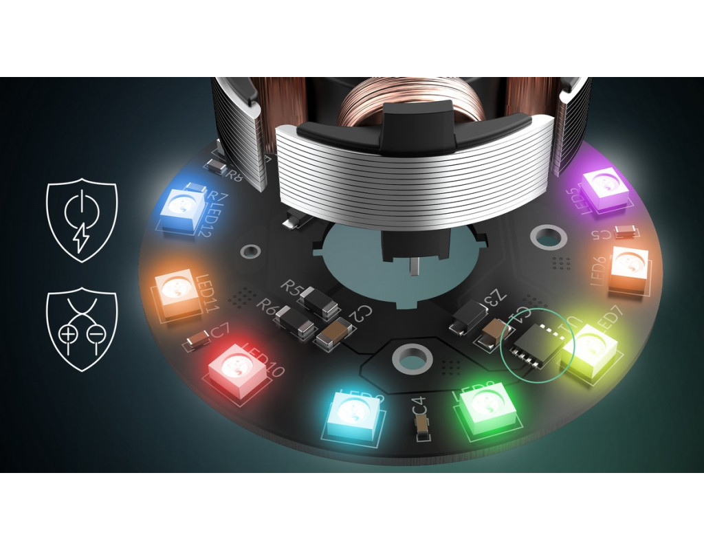 Мікроконтролер SOTA. Зменшує шум двигуна, компенсує коливання навантаження, захищає від пускових струмів і зворотної полярності