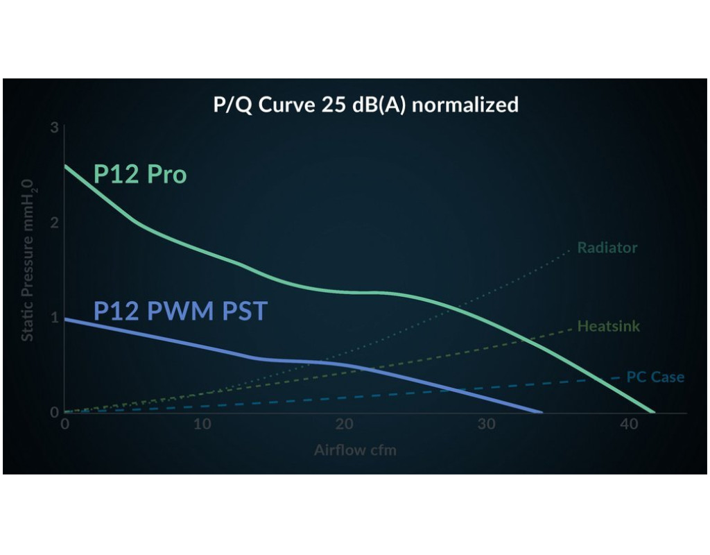 Ефективна робота при високому опорі повітря Завдяки високому статичному тиску вентилятори Pro ефективно проганяють повітря через вузькі простори. Це робить їх ідеальними для радіаторів, перфорованих панелей і сітчастих фільтрів. Максимальна продуктивність, переосмислена Оновлена конструкція лопатей вентилятора забезпечує оптимальний баланс між продуктивністю та плавністю роботи. Оптимізована конструкція підшипника та вала (FDB) Гідродинамічний підшипник у поєднанні з подовженим валом забезпечує тихішу роботу завдяки кращому розподілу тиску та мінімізації вібрацій. Автоматичне балансування у двох площинах Автоматизований процес вимірювання та балансування на двох рівнях забезпечує надзвичайну точність і плавну роботу завдяки точному нанесенню балансувальної маси на різній глибині. SOTA Мікроконтролер Знижує шум двигуна, компенсує коливання навантаження та захищає від пускових струмів і зворотної полярності. Більше потужності — менше шуму Вентилятор забезпечує високу продуктивність на низьких обертах, створюючи більший повітряний потік і статичний тиск при всього лише 25 дБ(A) — ідеально для тихого та потужного охолодження. Мінімальні зазори для максимальної ефективності Забезпечує високий статичний тиск і максимальну ефективність повітряного потоку. PST – синхронізоване керування вентиляторами на базі PWM Додатковий роз’єм PWM дозволяє синхронізувати кілька вентиляторів послідовно за допомогою одного роз’єму. |
