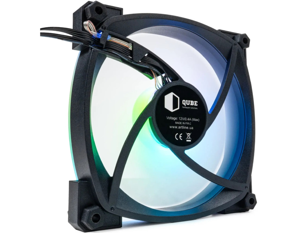 Кількість вентиляторів - 1, діаметр вентиляторів - 120 мм, тип підшипника - гідродинамічний підшипник, 2300RPM, тип роз'єму підключення - 4-pin, Підсвітка - різнокольорова, рівень шуму - 29 дБ