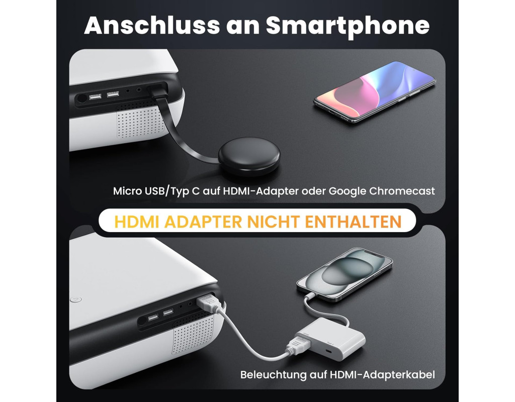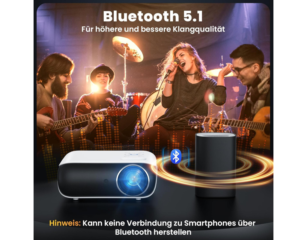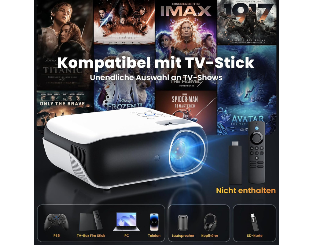 9500 люмен і декодування 4K: Міні-проєктор забезпечує яскравість 9500 люмен, роздільну здатність 1080p FHD і контрастність 10000:1. Завдяки декодуванню 4K ви отримаєте деталізовані тіні, насичені кольори та чіткі зображення для повного занурення в те, що відбувається. Великий екран До 200 дюймів: Насолоджуйтесь переглядом на екрані від 47 до 200 дюймів із проекційною відстанню від 1,3 до 8.53 м. Цей проєктор ідеально підходить для сімейних кіносеансів і великих компаній. Просунутий зв’язок Bluetooth 5.1 і 25% зум: Підключайте Bluetooth-колонки для створення об’ємного звуку або насолоджуйтеся вбудованими динаміками Hi-Fi. Функція 25% зуму дає змогу налаштувати розмір зображення без переміщення проєктора. Мультимедійні можливості Широка сумісність: Інтерфейси HDMI, USBx2, AV і 3.5 мм дають змогу під’єднувати динаміки, Fire TV Stick, ноутбуки, смартфони, iPad, PS5 і багато іншого. Використовуйте його вдома або на вулиці для максимальної зручності. |