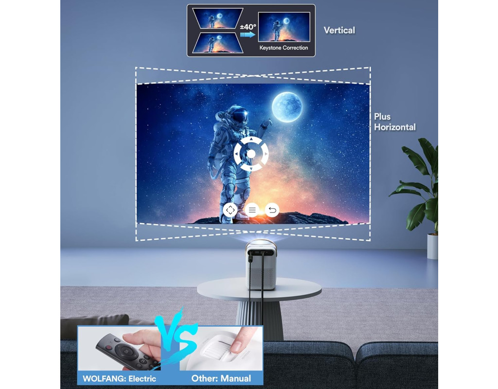 | Проєктор WOLFANG WP01 забезпечує роздільну здатність 1080P Full HD, що гарантує чітке та деталізоване зображення. Завдяки високому коефіцієнту контрастності 8000:1 та широкій кольоровій гамі, картинка виглядає насиченою та реалістичною. Оптимізована передача кольору робить зображення природним, забезпечуючи комфортний перегляд без зайвого навантаження на очі. Це ідеальне рішення для домашнього кінотеатру, перегляду фільмів, ігор або презентацій.
