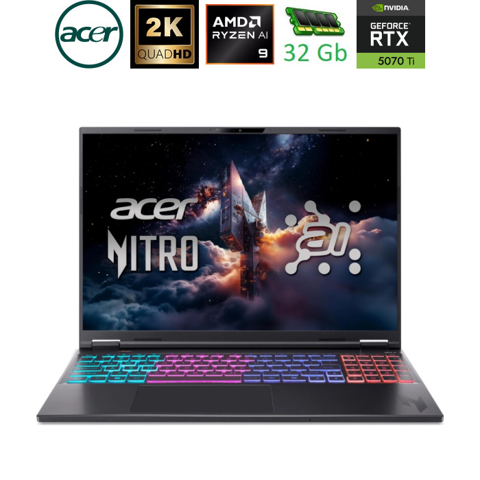 Acer Nitro V 16S AI Тонкий. Свобода пересування. Acer Nitro 16S AI ПК Copilot+ вирізняється тонким корпусом <19,9 мм, металевою верхньою кришкою та витонченими лініями, створеними для руху та стилю. Підсвічувані логотип Nitro і 4-зонна RGB-клавіатура додають йому яскравої індивідуальності, а легка конструкція дозволяє брати цю потужність із собою. Ретельно спроектована система охолодження Довговічна, вдосконалена система охолодження забезпечує незмінну продуктивність навіть під час високоінтенсивних сесій. Завдяки конструкції з двома вентиляторами, чотирьом впускним і випускним отворам та рідкій металевій термопасті для процесора, ця машина не підведе вас, коли ставки будуть високими. Безперебійне з'єднання з розширеними можливостями Упевнено підключайтеся за допомогою USB 4 і Wi-Fi 6E, щоб спростити налаштування та пришвидшити передачу даних. Незалежно від того, граєте ви в ігри чи працюєте в багатозадачному режимі, залишайтеся на зв'язку завдяки високошвидкісному з'єднанню з широкою смугою пропускання, яке відповідає вашому темпу життя. Покращене керування зі штучним інтелектом завдяки NitroSense та Experience Zone Керуйте кожним елементом за допомогою інструментів зі штучним інтелектом, налаштовуючи свій користувацький досвід відповідно до своїх потреб. NitroSense та Experience Zone дозволяють керувати системою в режимі реального часу, оптимізуючи її роботу, щоб ви могли контролювати свій цифровий світ. Acer ProCam Acer ProCam автоматично розпізнає основні моменти ігрового процесу та записує їх. Acer PurifiedView Користуйтесь автоматичним кадруванням, вдосконаленим розмиттям фону та корекцією погляду для відеодзвінків із підтримкою ШІ, а також функцією Acer TNR, що забезпечує чіткіші зображення за умов низької освітленості. Acer PurifiedVoice 2.0 Використовуючи алгоритми штучного інтелекту та 3-й мікрофон для виявлення та усунення небажаного фонового шуму, Acer PurifiedVoice 2.0 забезпечує чистий звук без відволікаючих факторів для більш захопливого спілкування. |