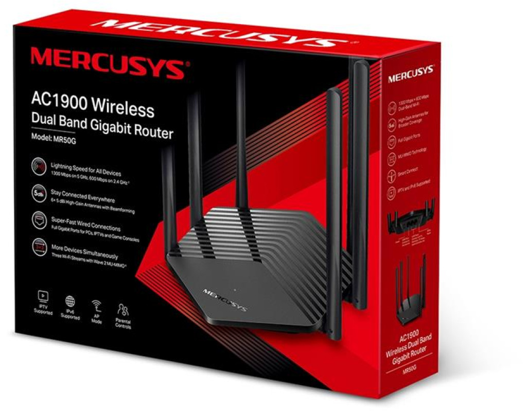 | Двосмугова швидкость AC1900 – насолоджуйтесь домашніми розвагами без будь-яких затримок, досягаючи швидкості до 1900 Мбіт/с (1300 Мбіт/с на діапазоні 5 ГГц та 600 Мбіт/с на діапазоні 2,4 ГГц).