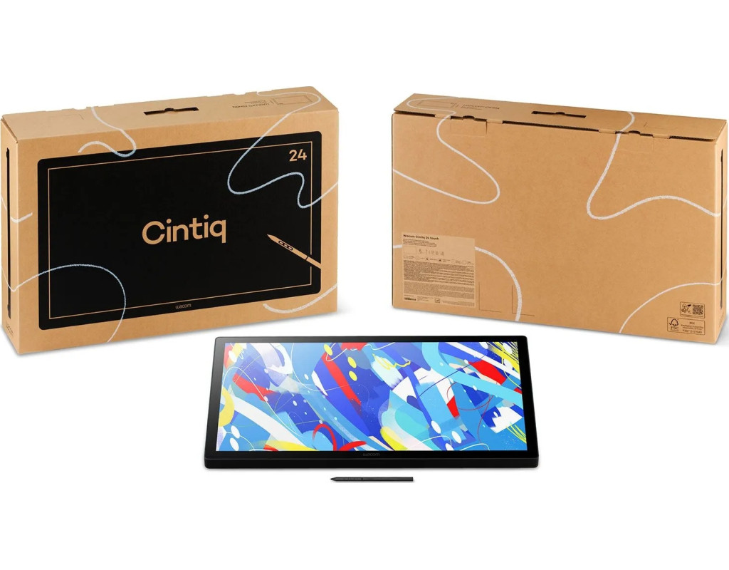 Wacom Cintiq 24 Touch - це перовий IPS-дисплей, спеціально розроблений для поціновувачів свободи у творчості, розмірі та можливості керування пальцями, що дозволяє масштабувати, панорамувати та обертати свої полотна легким дотиком руки. Пристрій оснащений першокласним пером Pro Pen 3, який також входить до складу інших професійних моделей Wacom. Завдяки надзвичайній чутливості пера, високій роздільній здатності у 2,5K та антивідблисковому покриттю, пристрій забезпечує природне, схоже на папір, відчуття малювання на просторій робочій поверхні.