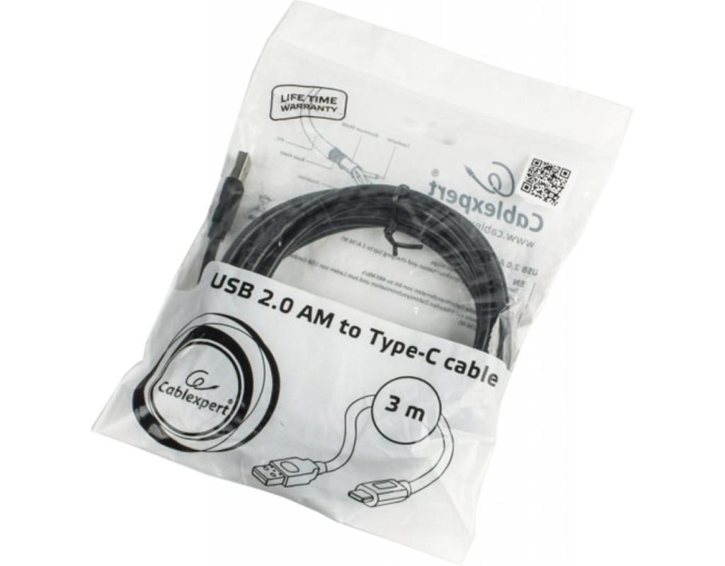 Дата кабель USB 2.0 AM to USB-C 3.0m Cablexpert (CCP-USB2-AMCM)