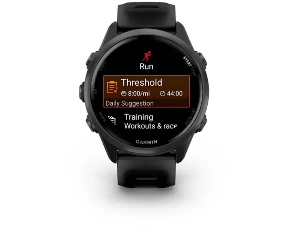Призначені для спортсменів, які прагнуть високих результатів. З новим біговим смарт-годинником Garmin Forerunner 570, який пропонує розширений функціонал для тренувань та відновлення, а також персоналізовані плани тренувань Garmin Coach для бігу та тріатлону, ваші заняття спортом стануть більш продуктивними. Виглядають красиво, працюють чудово! Завдяки яскравому AMOLED-дисплею, легкому алюмінієвому безелю та різноманітній колірній палітрі в дизайні цей годинник привертає до себе увагу, виглядає креативно, але при цьому зручний як на тренуваннях, так і в повсякденному носінні. Компанія Garmin надає вибір споживачеві, пропонуючи два розміри смарт-годин: 42 мм та 47 мм. Автономність Forerunner 570 – до 10/11 днів при звичайному використанні в режимі розумного годинника. «Трохи зайнятий. Що трапилося? Чи знайома вам така ситуація, коли відволікають від тренування телефонними дзвінками? А у вас немає можливості перервати активність або просто незручно взяти в спітнілі руки телефон? Якщо так, то розумний годинник Forerunner 570 вас порадує тим, що в їхній корпус інтегровані динамік і мікрофон, за допомогою яких можна приймати дзвінки під час пробіжки прямо на зап’ястя. Яскравий 1,2-дюймовий AMOLED-дисплей До 18 годин роботи батареї в режимі GPS Розширені функції для тренувань та відновлення Технологія SatIQ та багатодіапазонний GPS Легкий алюмінієвий безель Музика на вашому зап’ясті Що вам сподобається Адаптивні плани тренувань Garmin Coach Підготуйтеся до наступного забігу, тренуйтеся для досягнення важливого результату або просто покращіть свою фізичну форму за допомогою планів тренувань Garmin Coach для бігу, тріатлону, велоспорту чи силових тренувань. Виберіть потрібний план, і він щодня адаптуватиметься для персоналізованих тренувань на основі показників вашої продуктивності, відновлення та здоров’я. Готовність до тренувань З моменту пробудження ви отримуєте оцінку готовності, засновану на даних про якість сну, відновлення, тренувальні навантаження та інші параметри, щоб ви могли визначити, для чого підходить сьогоднішній день – для інтенсивного навантаження або для розслаблення. Статус тренування Використовуючи такі показники, як статус варіабельності серцевого ритму, історія останніх тренувань та максимальний рівень споживання кисню (VO2), ви легко зможете оцінити ефективність тренувань і дізнатися, чи тренуєтеся ви продуктивно, чи перебуваєте на піку форми, чи відчуваєте перенапругу Вечірній звіт Щоб краще підготуватися до наступного дня, перед сном ви отримаєте вечірній звіт з нагадуваннями про потребу уві сні, завтрашнє тренування, погоду та намічені події. Щоденні рекомендовані тренування Отримуйте рекомендації з тренувань, розроблені спеціально для вас та на основі ваших даних. Ці рекомендації відрізняються за інтенсивністю та адаптуються після кожного тренування з урахуванням продуктивності та відновлення. Вбудовані динамік та мікрофон Здійснюйте та приймайте телефонні дзвінки з годинника, коли вони пов’язані зі смартфоном. Крім того, керуйте функціями годинника за допомогою голосових команд або використовуйте голосового помічника смартфона, щоб відповідати на текстові повідомлення та багато іншого. З’єднання Музика Завантажуйте пісні та плейлисти зі своїх облікових записів Spotify, Deezer або Amazon Music для прослуховування без телефону. Функції безпеки 