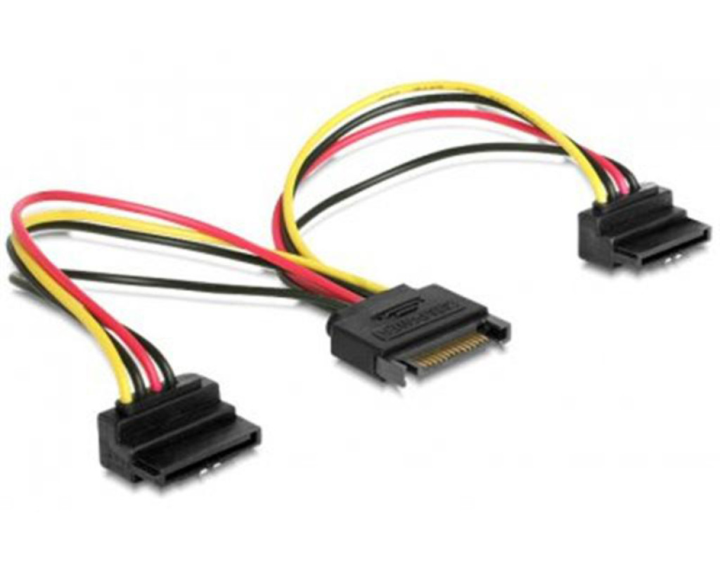 | Кабель живлення двох SATA портів від роз"єму SATA (розгалужувач) Вихідні роз"єми - кутові Довжина: 15 см |