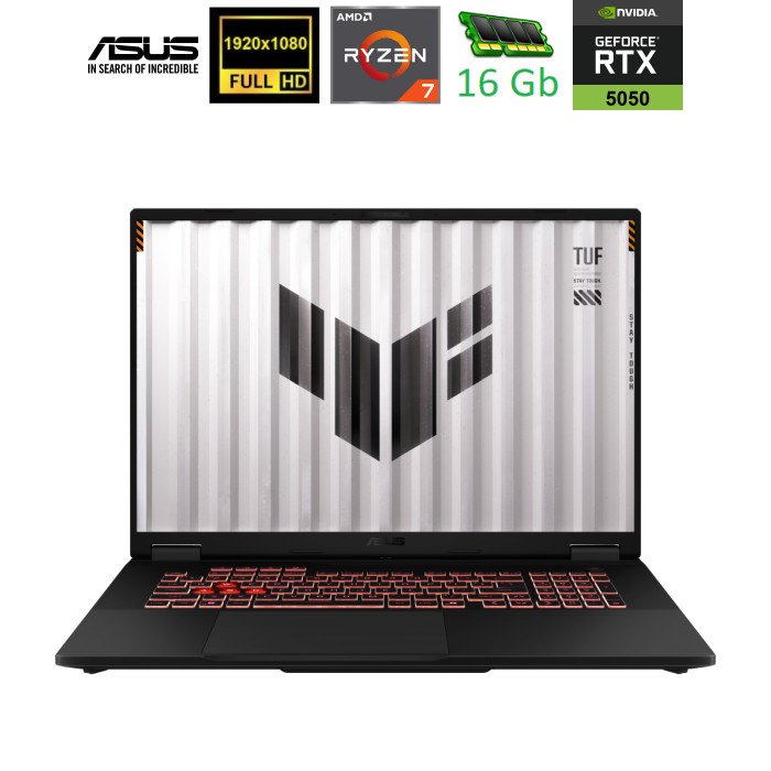 | Серйозні ігрові характеристики Новий представник сімейства ігрових ноутбуків, TUF Gaming A18, може похвалитися характеристиками, що дійсно вражають, відкриваючи шлях до найкращих ігор. Новий рівень продуктивностіПриготуйтеся до вражаючої ігрової продуктивності з відеокартою NVIDIA GeForce RTX для ноутбуків, якою може бути оснащений новий TUF Gaming A18 2025-го модельного року. Завдяки найсучаснішим технологіям, таким як DLSS 4, Multi Frame Generation і трасування променів, A18 дарує неймовірні враження від найновіших і найбільш вимогливих до графічної продуктивності ігор. Абсолютно новий дизайн Перший 18-дюймовий ноутбук у серії TUF Gaming, TUF Gaming A18, оснащений сучасними функціями, які використовують переваги додаткового простору. Завдяки дисплею з роздільною здатністю WUXGA і співвідношенням сторін 16:10, повноформатній клавіатурі з цифровим блоком, великому тачпаду та акумулятору ємністю 90 Вт*год, TUF Gaming A18 є ідеальною мобільною станцією для ігор. Надійність військового класуЩоб заслужити ім’я TUF Gaming, ці ноутбуки повинні успішно пройти серію суворих випробувань за військовим стандартом MIL-STD-810H. Зокрема, пристрої піддаються впливу падінь, вібрації, вологи та екстремальних температур. TUF Gaming A18 без проблем витримає всі тяготи не дуже дбайливого повсякденного використання. Ефективне охолодженняПотужні компоненти потребують належного охолодження, тому TUF Gaming A18 пропонує цілу низку технологій, що забезпечують його максимальну продуктивність. Повітря від вентиляторів Arc Flow Fans 2-го покоління з дизайном, натхненним авіаційними двигунами, подається на великий радіатор, що простягається вздовж усієї задньої грані ноутбука. Додайте сюди вбудовані пилові фільтри та систему теплових трубок – A18 ніколи не втратить свою прохолоду. Вентилятори Arc Flow Fans 2-го поколінняНа кінчиках кожної з 84 основних лопаток було додано невеликі вигини, які покращують як ефективність роботи електромотора й зменшують турбулентність повітря. Вентилятори тепер також мають конструкцію з двома крильчатками, менша з яких розташована всередині та має 42 лопатки, що дозволяє всмоктувати більше повітря з кожним обертом, подібно до реактивної турбіни. Нові вентилятори споживають на 16% менше енергії при одночасному збільшенні повітряного потоку на 11%, що дає змогу високопродуктивним компонентам всередині працювати з максимальною віддачею. Світ у ваших рукахОзбройтеся клавіатурою у стилі клавіатури настільного комп'ютера, створеною спеціально для ігор. Однозонне RGB-підсвічування можна оформити у власному унікальному стилі. Технологія Overstroke забезпечує прискорене спрацьовування клавіш для швидшої реакції та кращого керування в іграх. Відповідно до вимог серії TUF, клавіатура також може похвалитися особливою довговічністю – її ресурс становить понад 20 мільйонів натискань. Тачпад має частоту опитування 240 Гц, що дає системі більше інформації про те скролінг, і зменшує кількість випадкових помилкових натискань. Сучасні інтерфейси Ноутбук TUF Gaming A18 пропонує велику кількість портів для підключення периферії. Окремий порт HDMI 2.1, доповнений двома портами USB Type-C з підтримкою інтерфейсу DisplayPort, а також можливості заряджання та універсальної функціональності USB 4. Зі швидким і надійним бездротовим модулем Wi-Fi 6E (802.11ax) ви зможете вийти в Інтернет та ефективно працювати з будь-якого місця або ж під’єднатися на